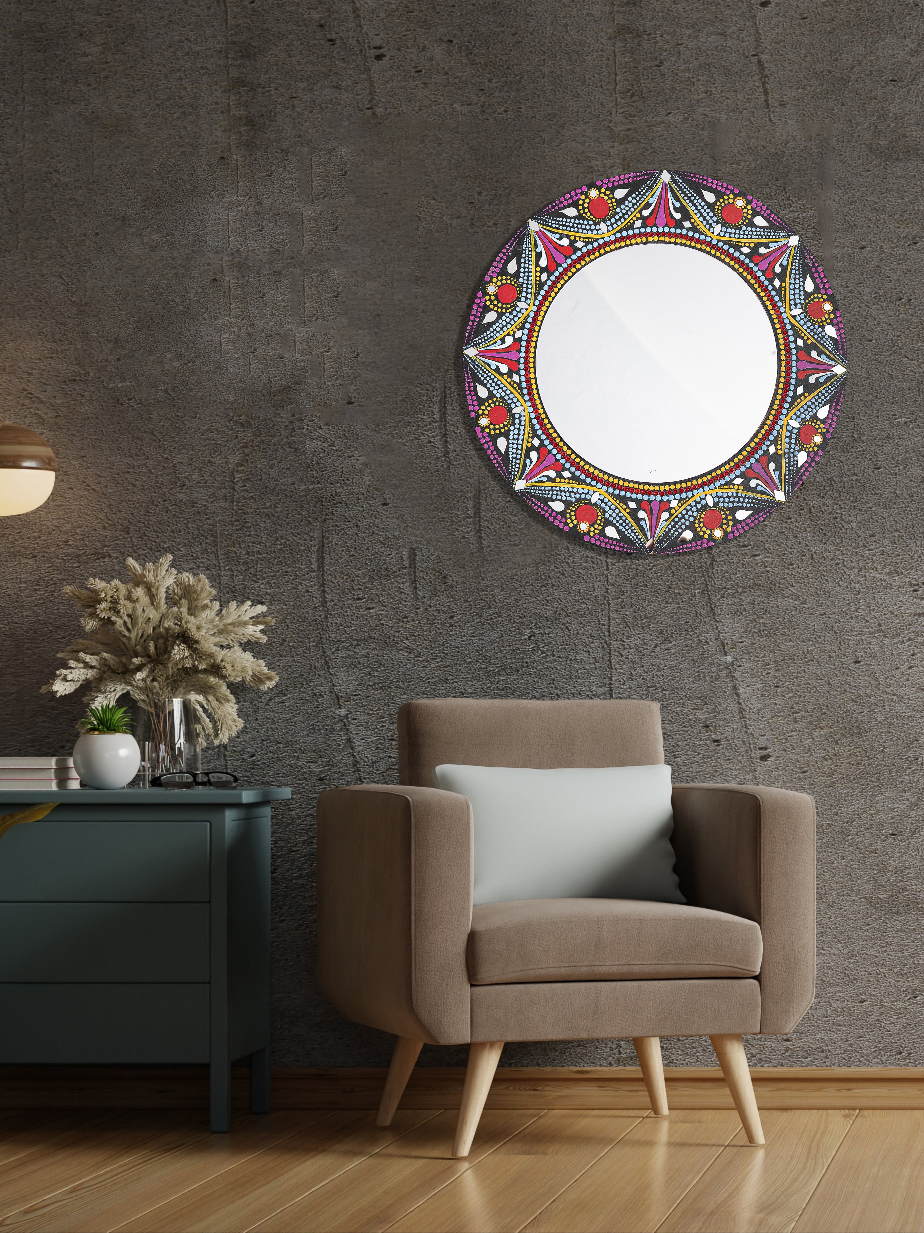 Lend a royal and exquisite touch to your home decor with our Rangoli design Mandala art mirror. It instantly transforms any space while serving its primary purpose - reflecting positivity that your home imbibes.