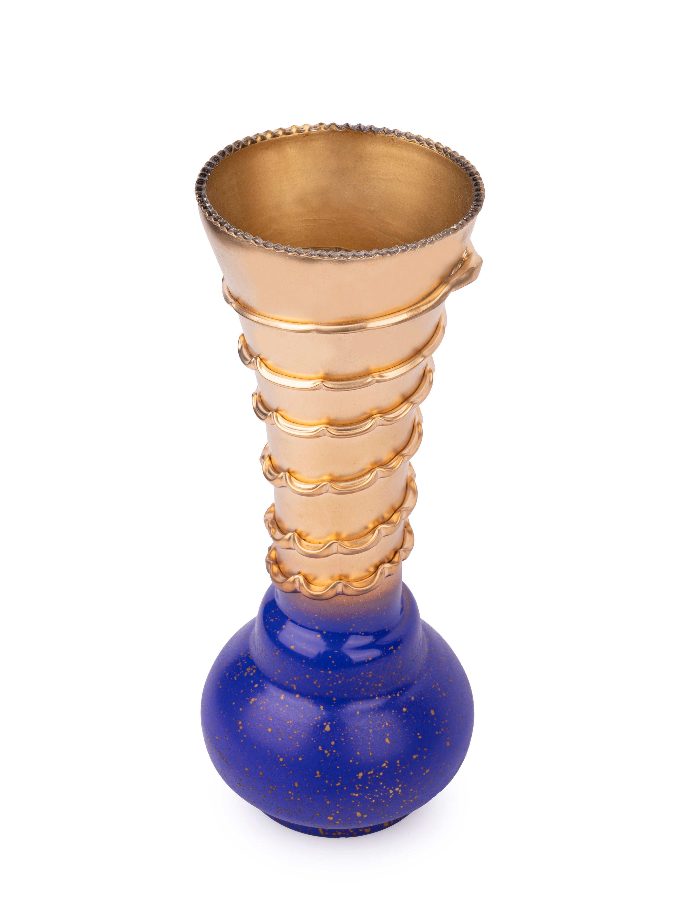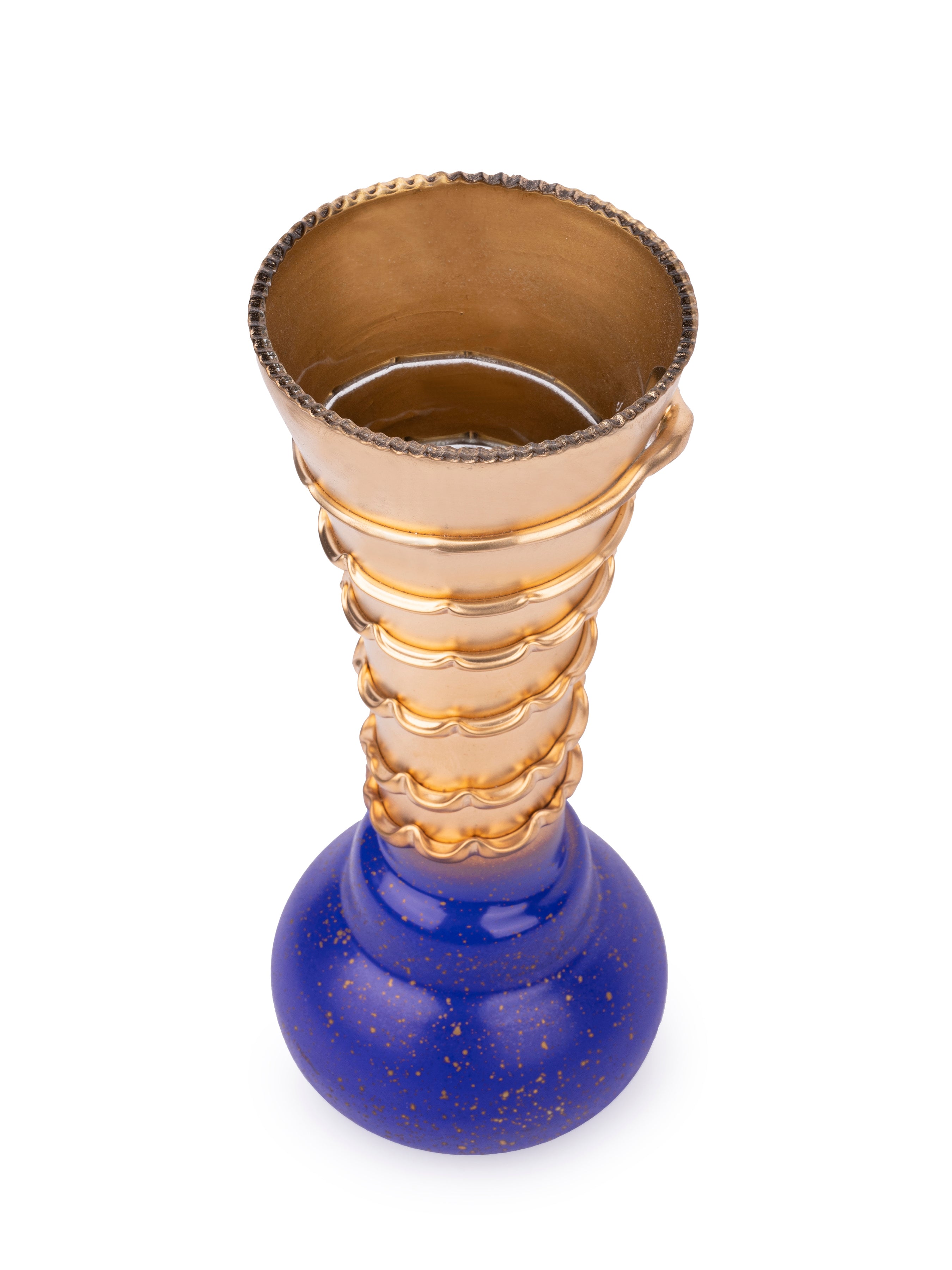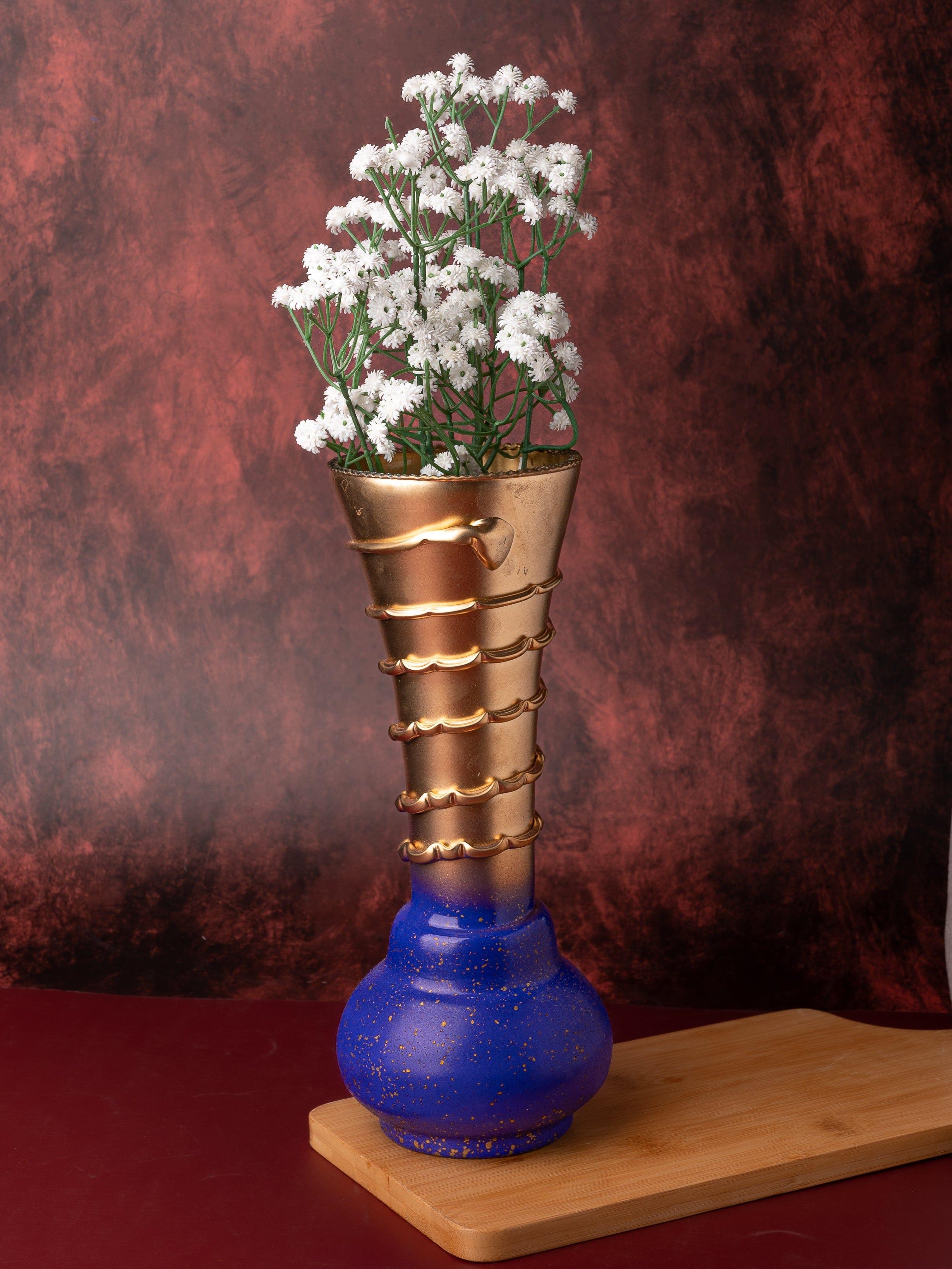 Whether you're looking for a unique way to display freshly picked flowers or just want to liven up your living space, this golden blue flower vase has you covered. It has a modern elegance that will look great in your home and is perfect for floral arrangements. Our exquisite glass vases will add a touch of elegance to any bookshelf or coffee table they are placed on.
