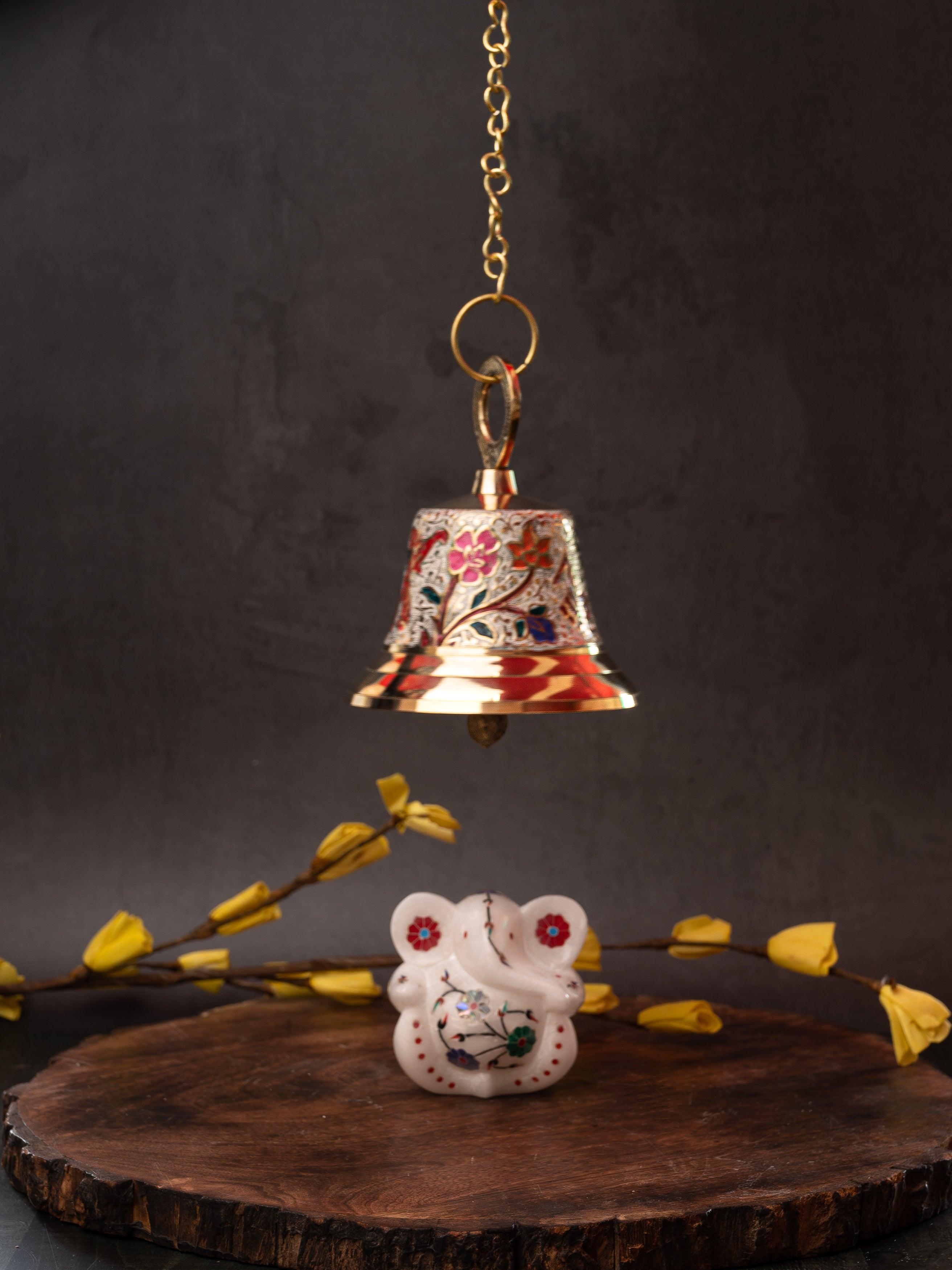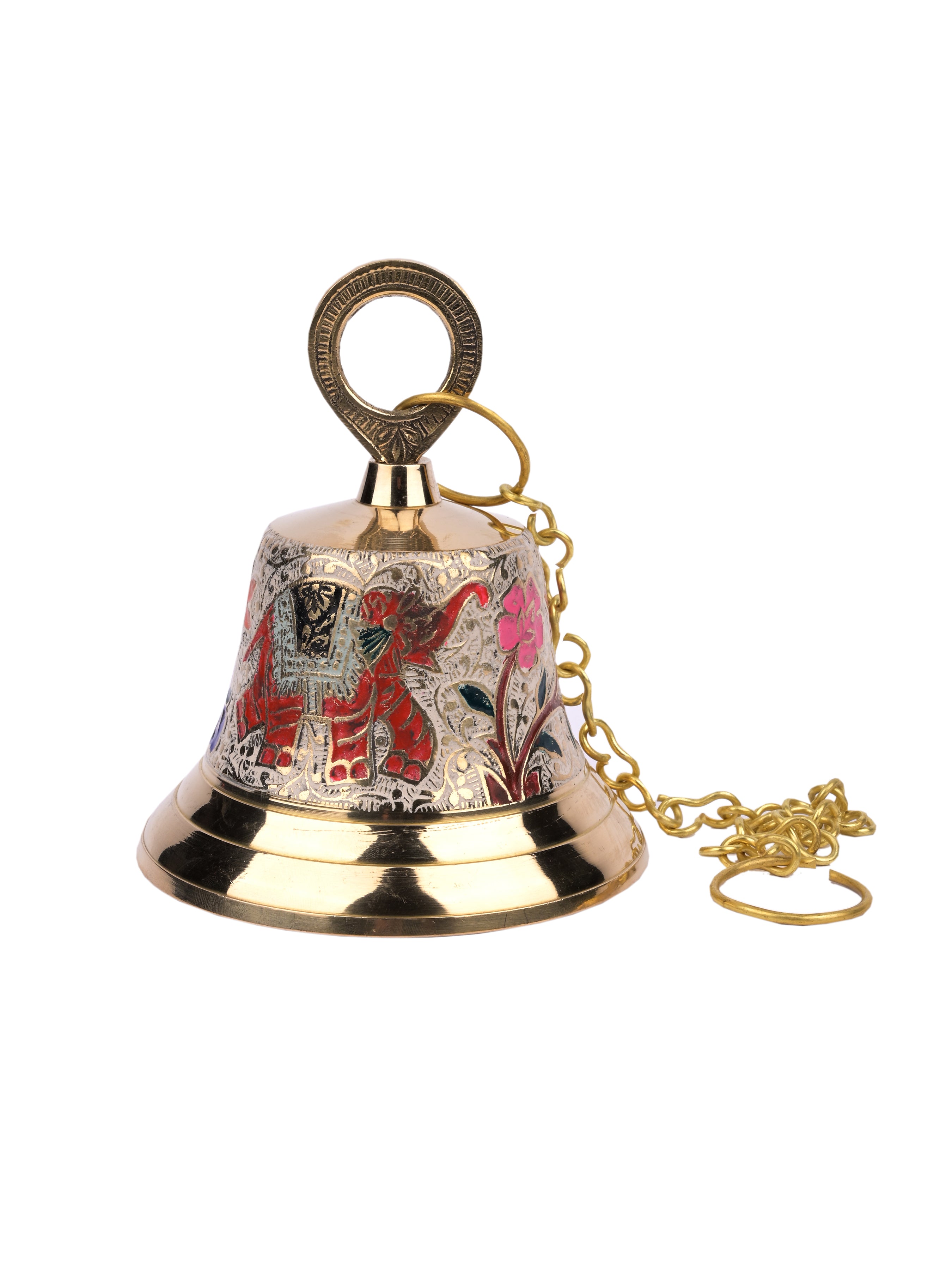 The sound of temple bell is considered auspicious which welcomes divinity to enter home and heart and dispels evil forces. This brass painted stylish bell is quite different from the regular ones and will give a unique look to your puja room.