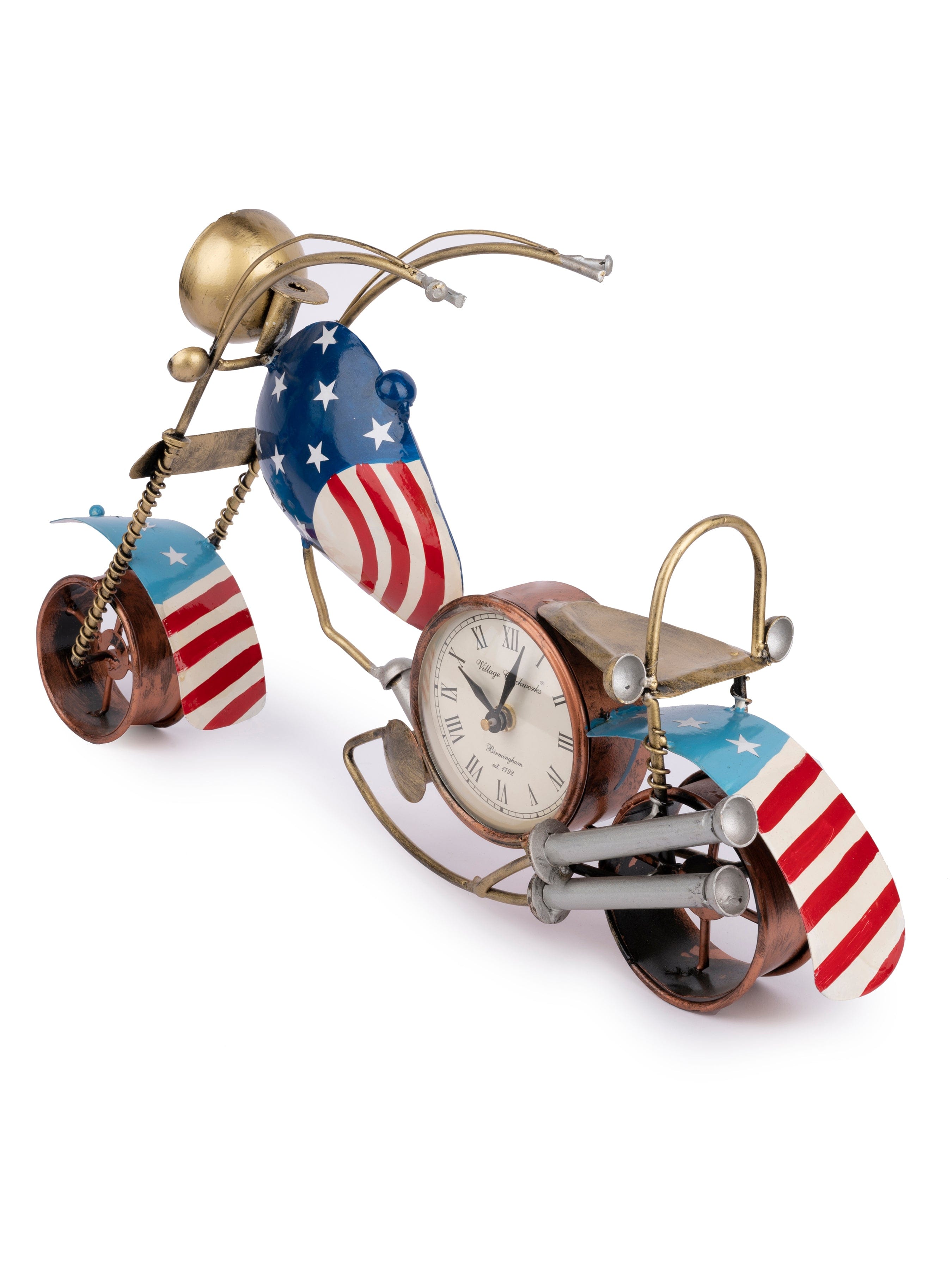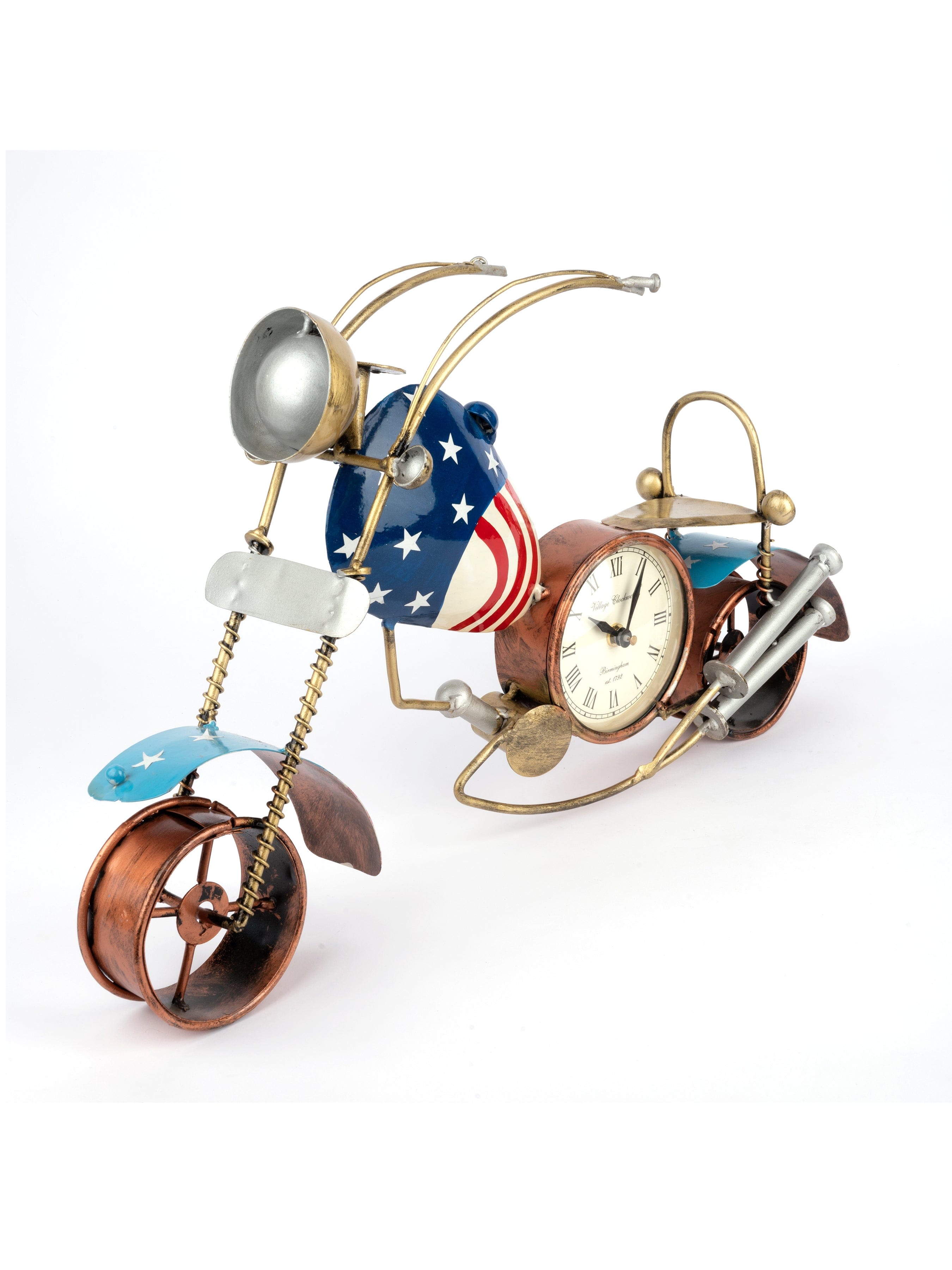 Give your home decor a retro look with this hand crafted powder coated iron bike. A clock in the center adds utility to it also. You can place this on a desktop or shelf of your living room and let the guests admire your taste of interiors. It can be even a great addition to the kids room because bikes fantasize our young generation quite a lot.