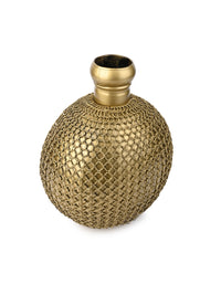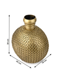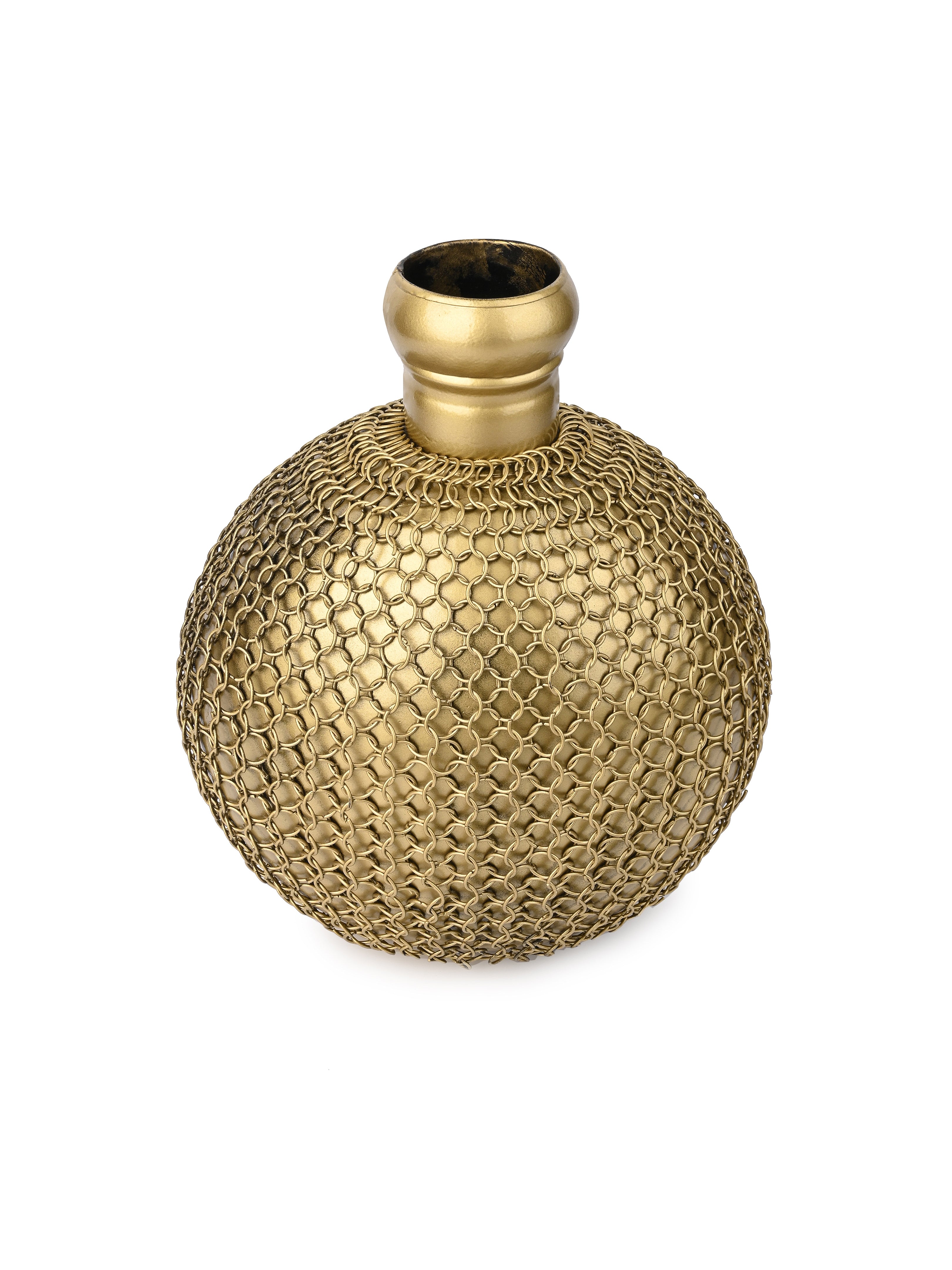 Metal Crafted Golden Vase covered with Chain Mesh - 12 inches