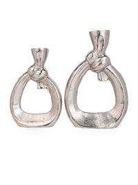 This exquisite creation boasts impeccable craftsmanship exuding a vintage appeal with its antique silver finish. It is a work of art that adds character and elegance to any space. Illuminate your home with this stylish candle holder set and relax in the warm, inviting glow.