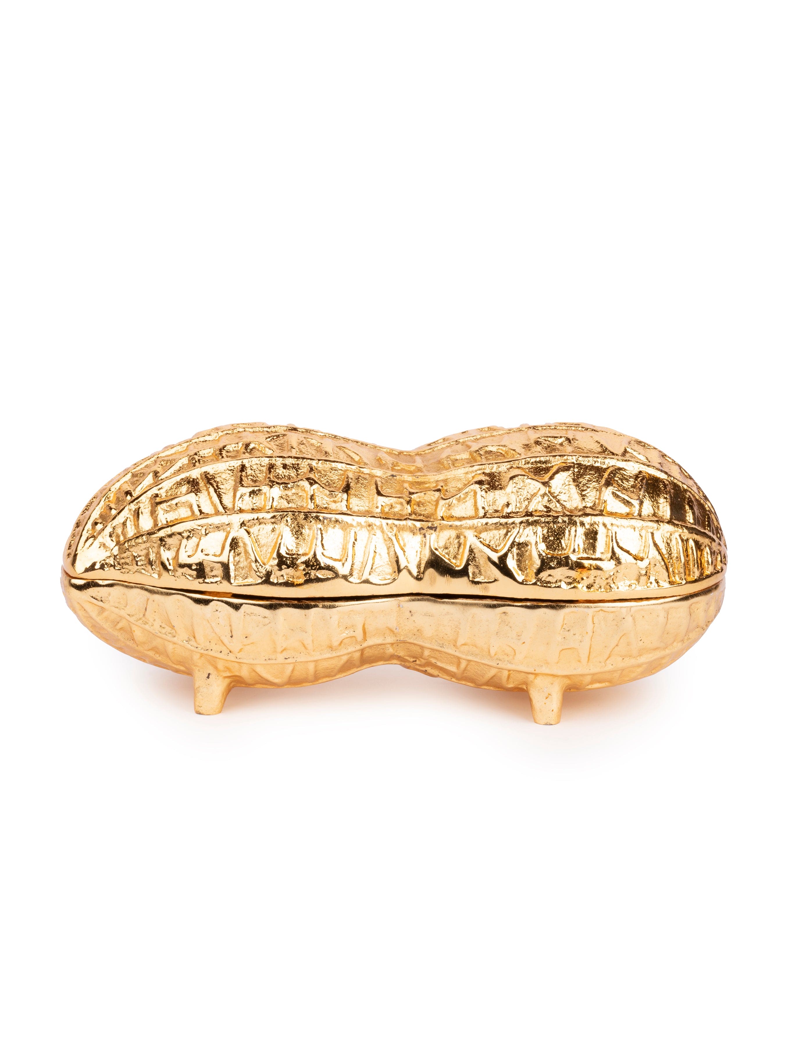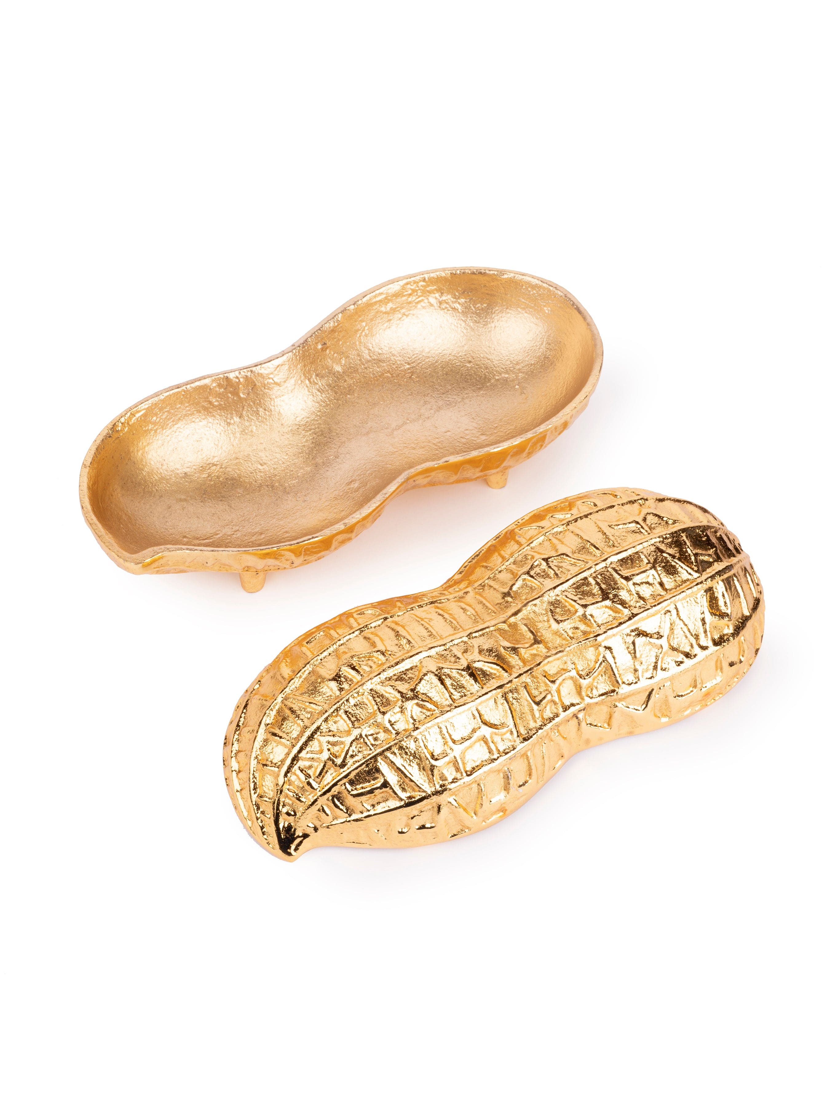 Presenting this dazzling gold Peanut Bowl with lid made of hammered metal. It can double up as a box for gifting dry fruits or for serving dry snacks. An unique eye catching and splendid design that will leave your friends and guests in awestruck mode.
