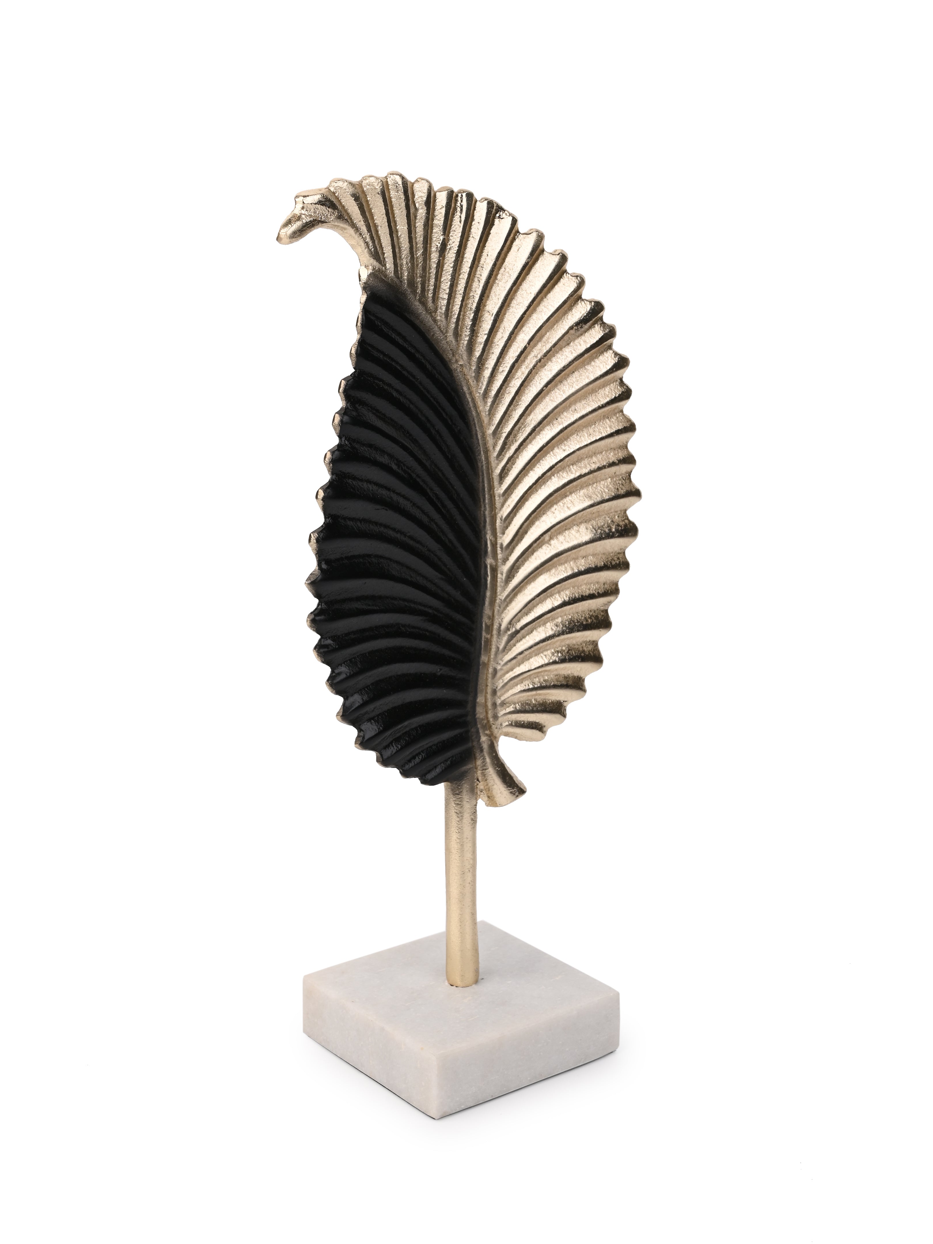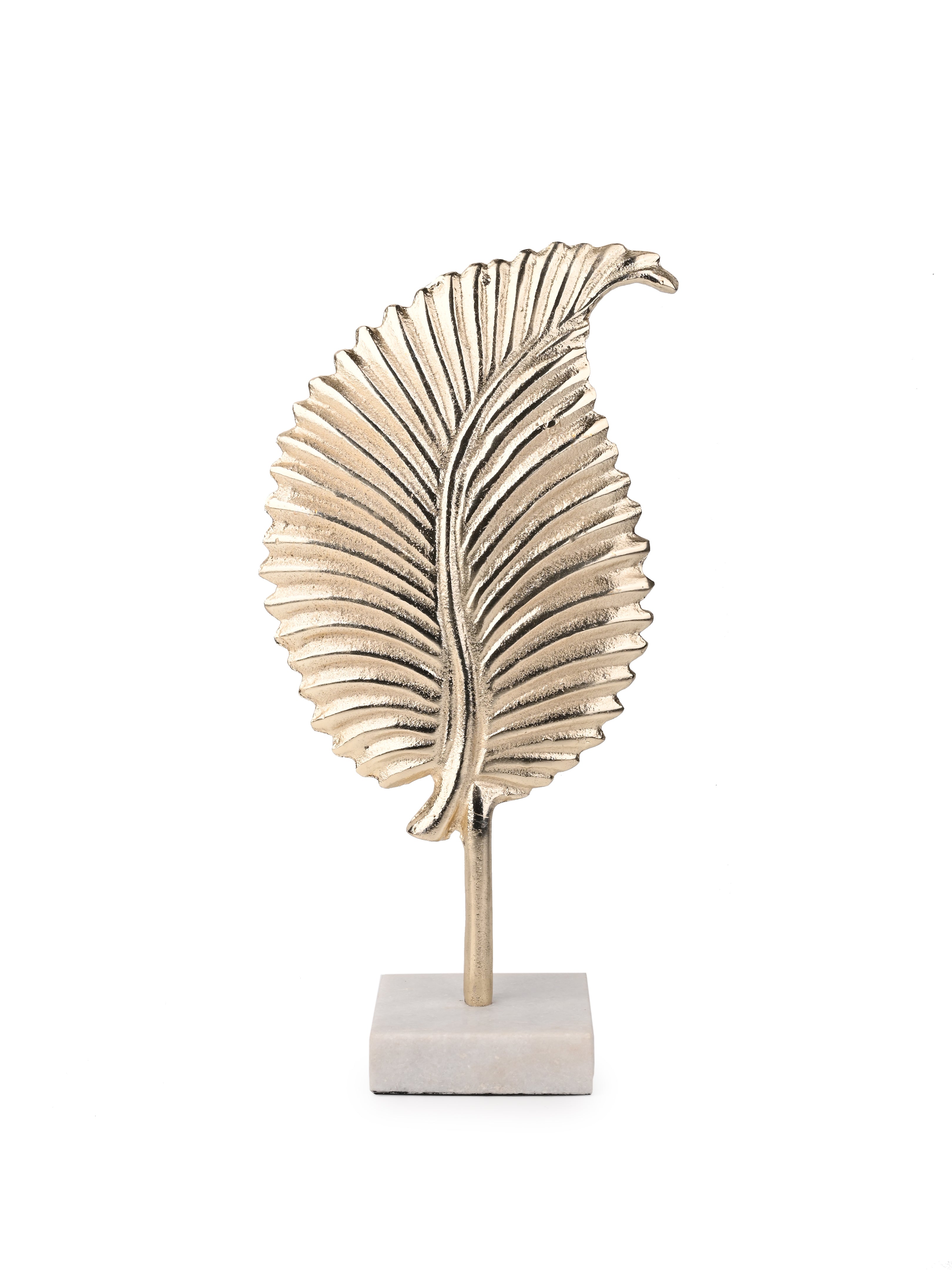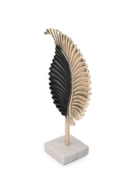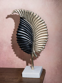 This rustic design metal leaf sculpture supported by a sleek yet sturdy stand is great for accenting your console table or coffee table. This distinctive decor is sure to draw the eye and bring a tropical feeling into your home.