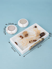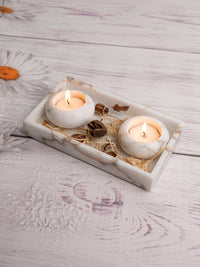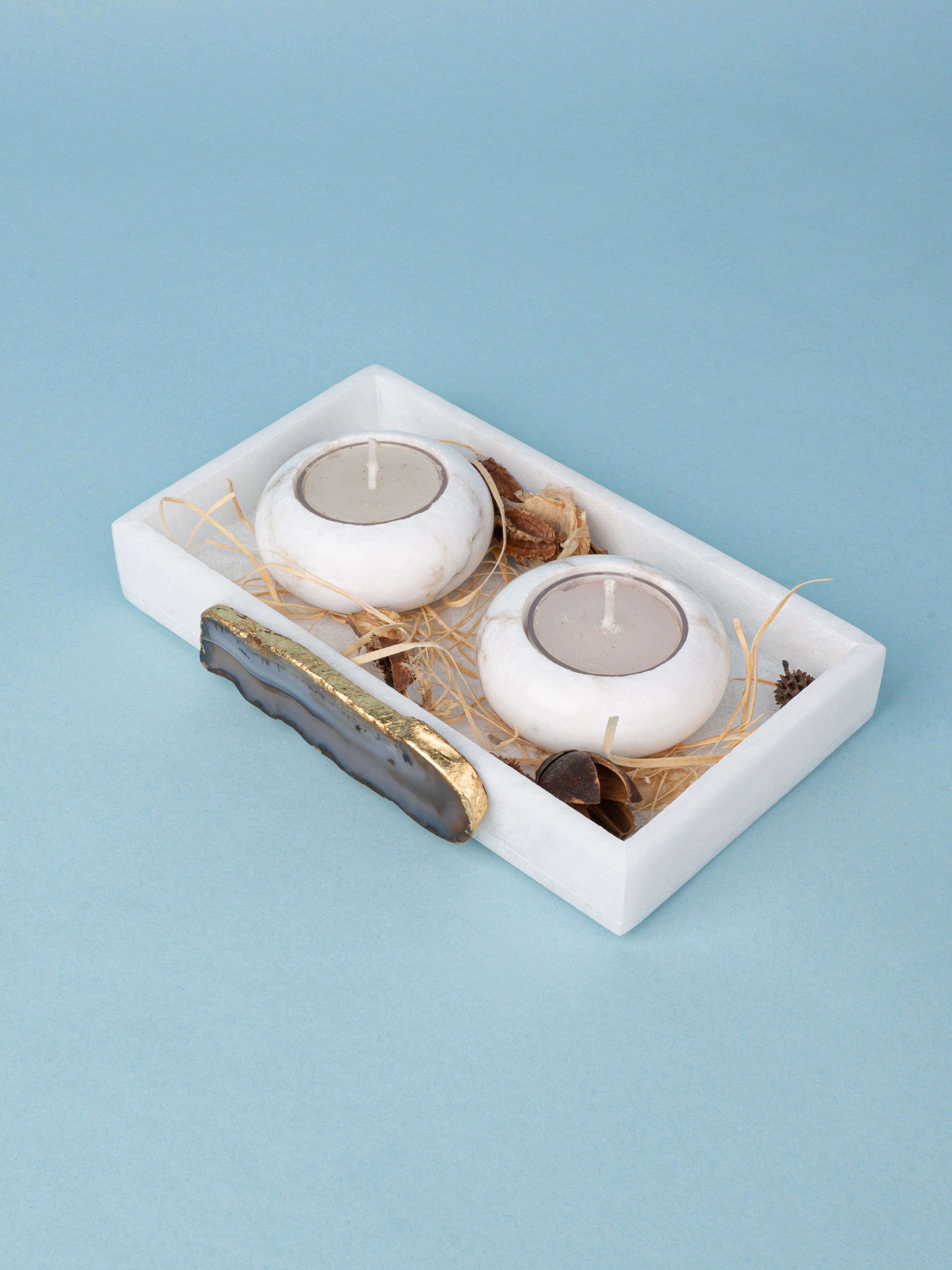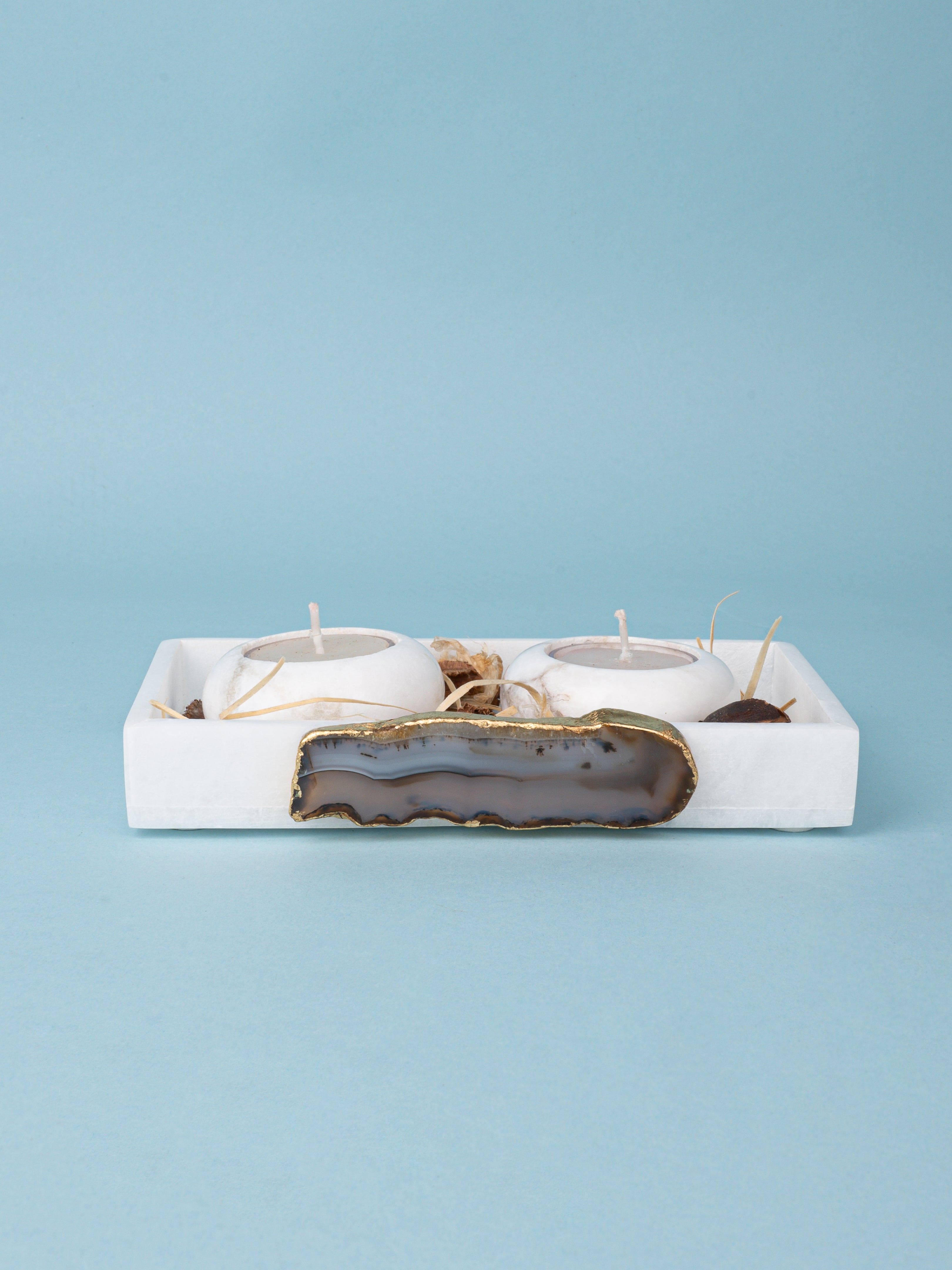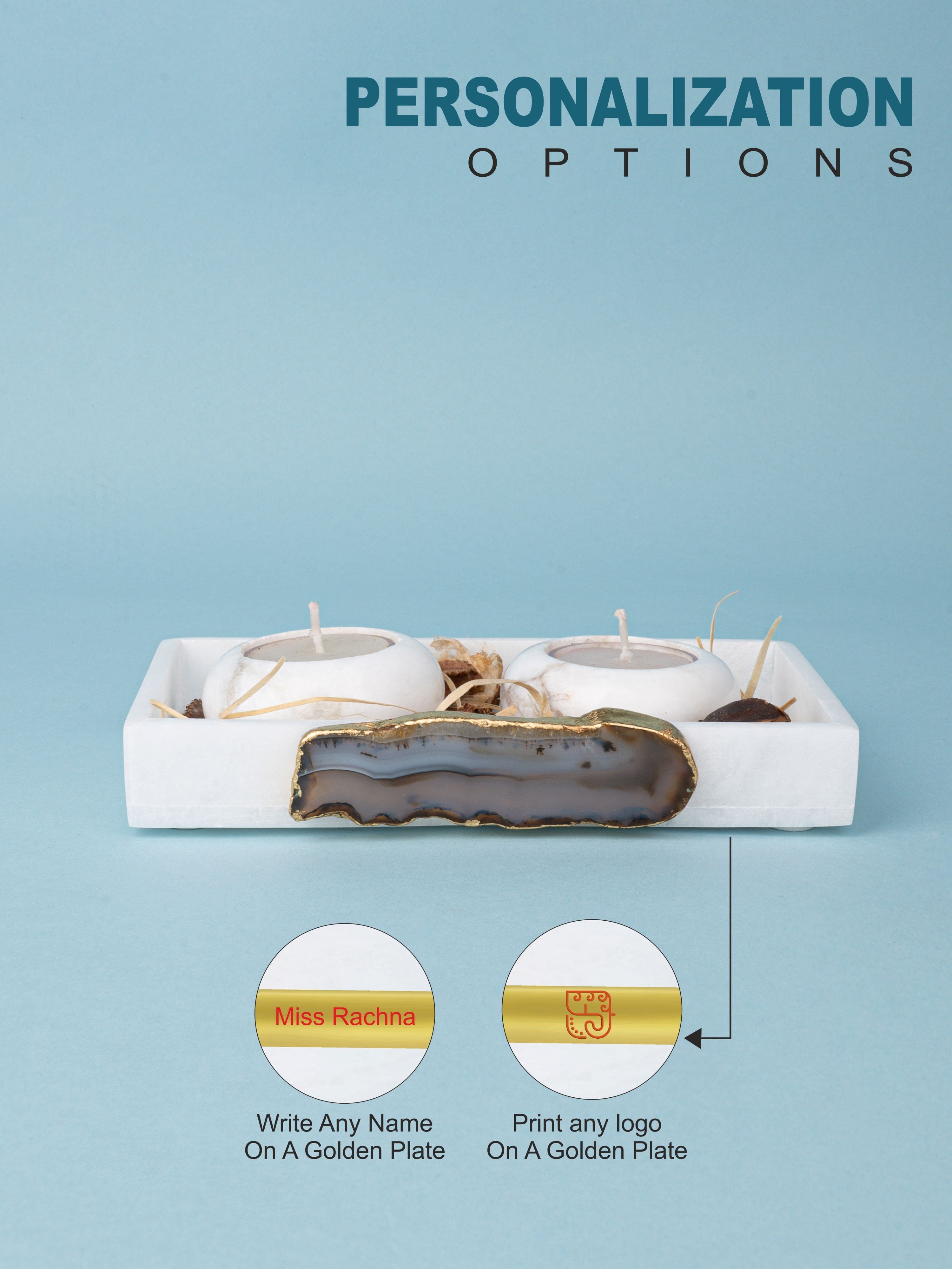 The perfect choice to decorate your space for Diwali, thanksgiving dinner decoration, a house party or a candle-lit dinner. It has agate stone decorated tray and 2 pieces of candle holders finished with superb craftsmanship. Thanks to the classy finish this set easily fits into any home ambience.
