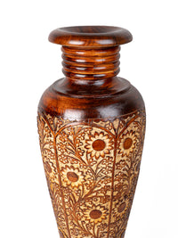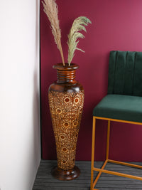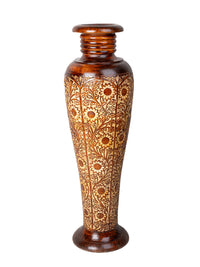 Tall and heavy Sheesham wood intricately crafted floor Vase - 3 ft height