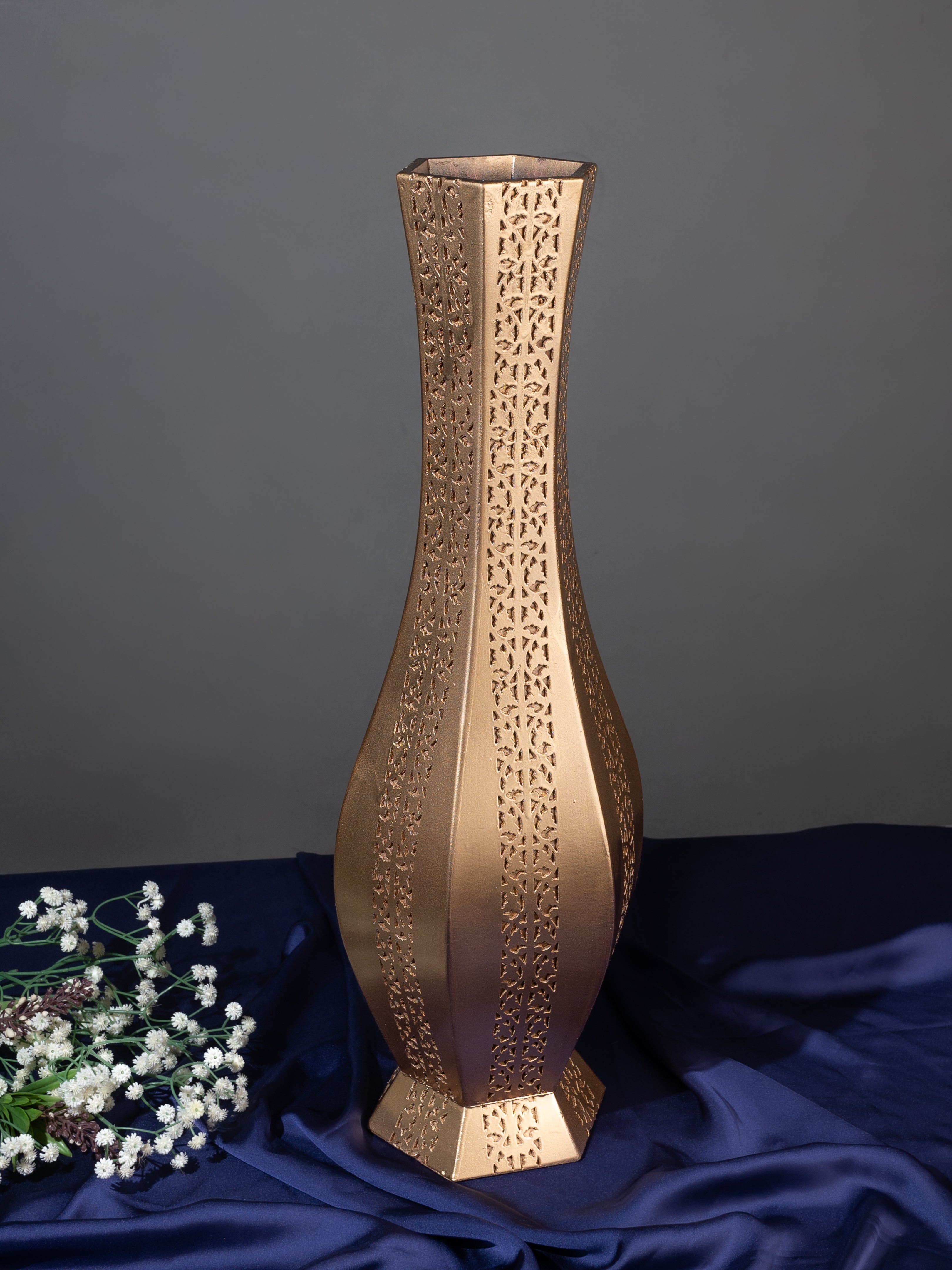 Tall Golden Surahi Shaped Flower Vase for Home Office Decor- 2 feet height
