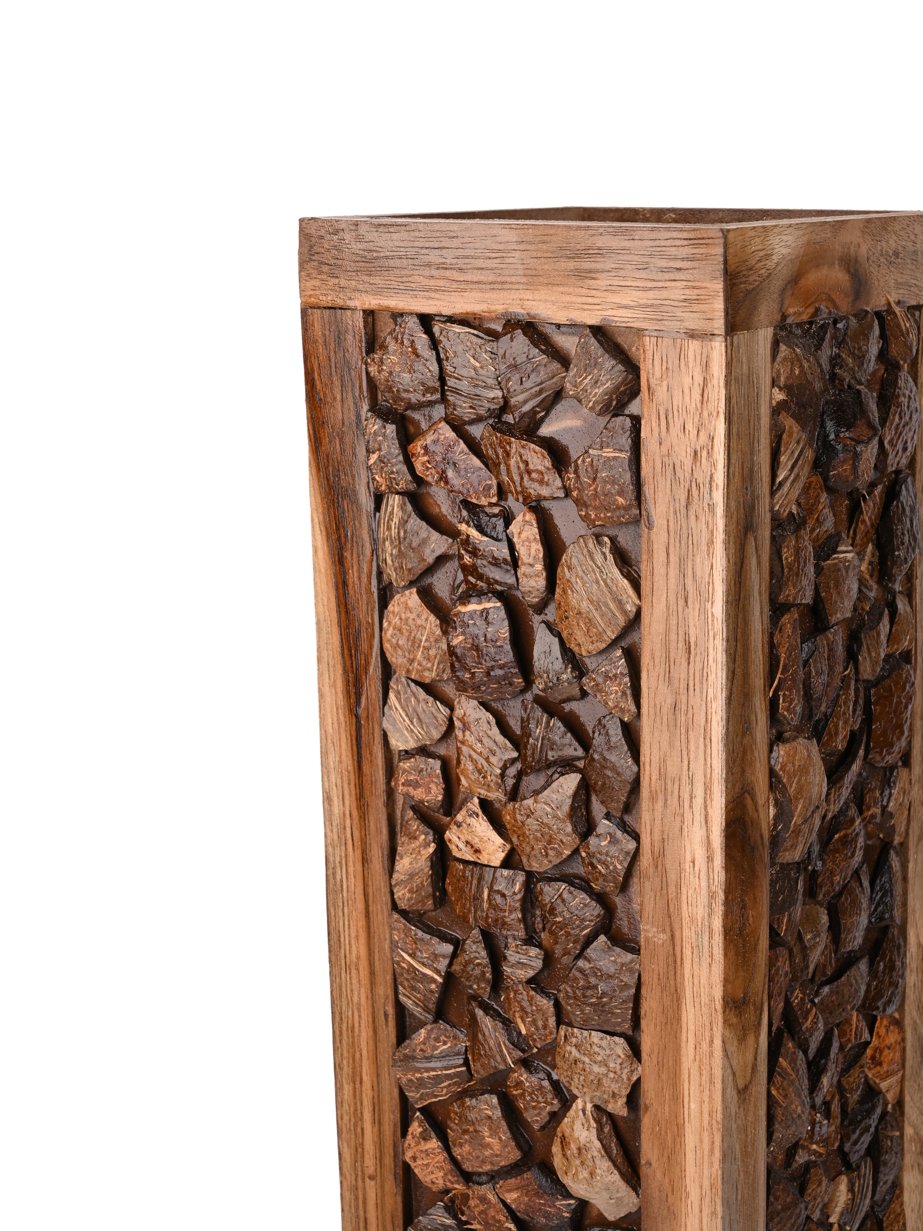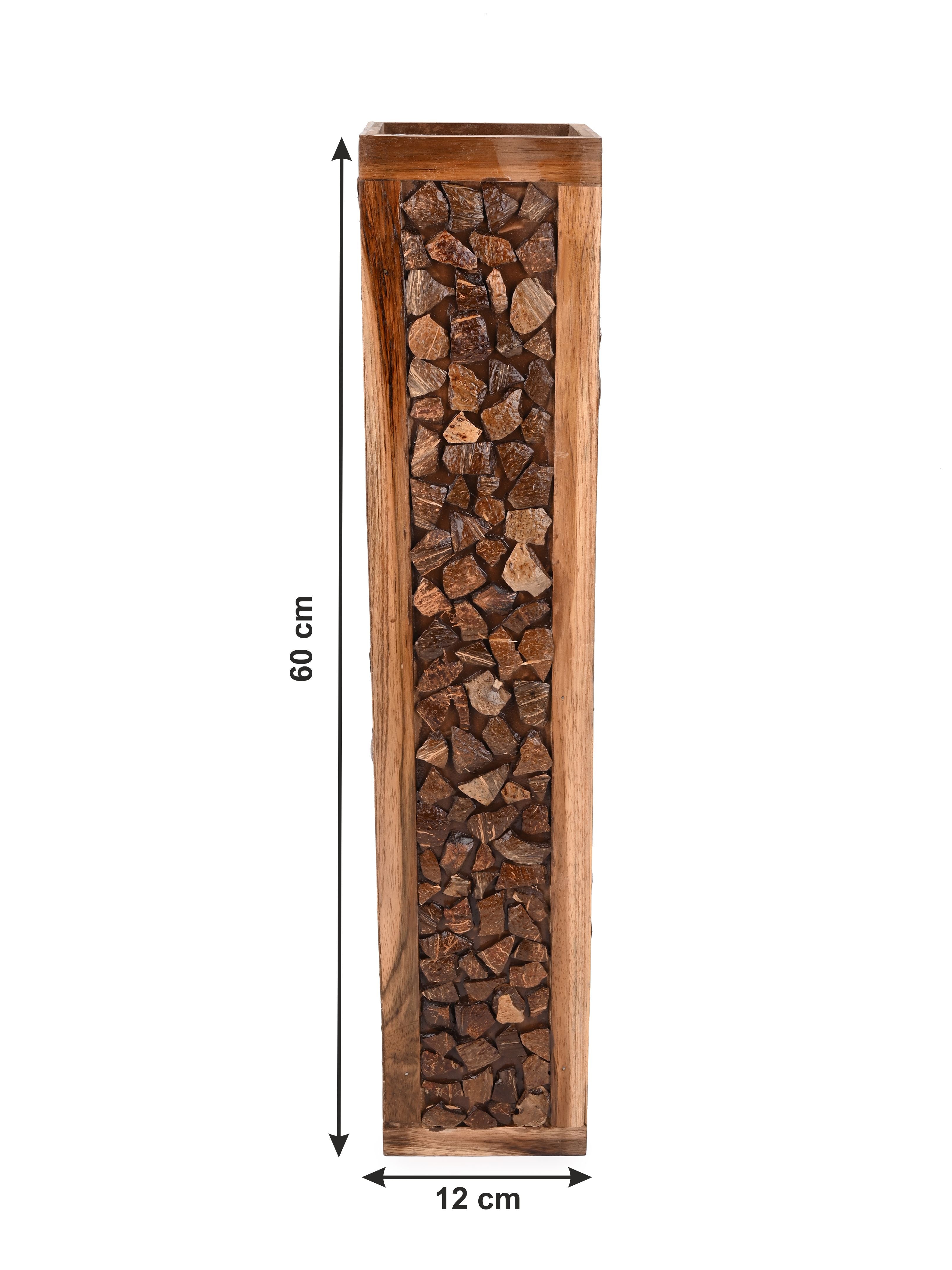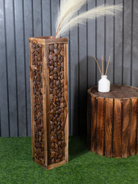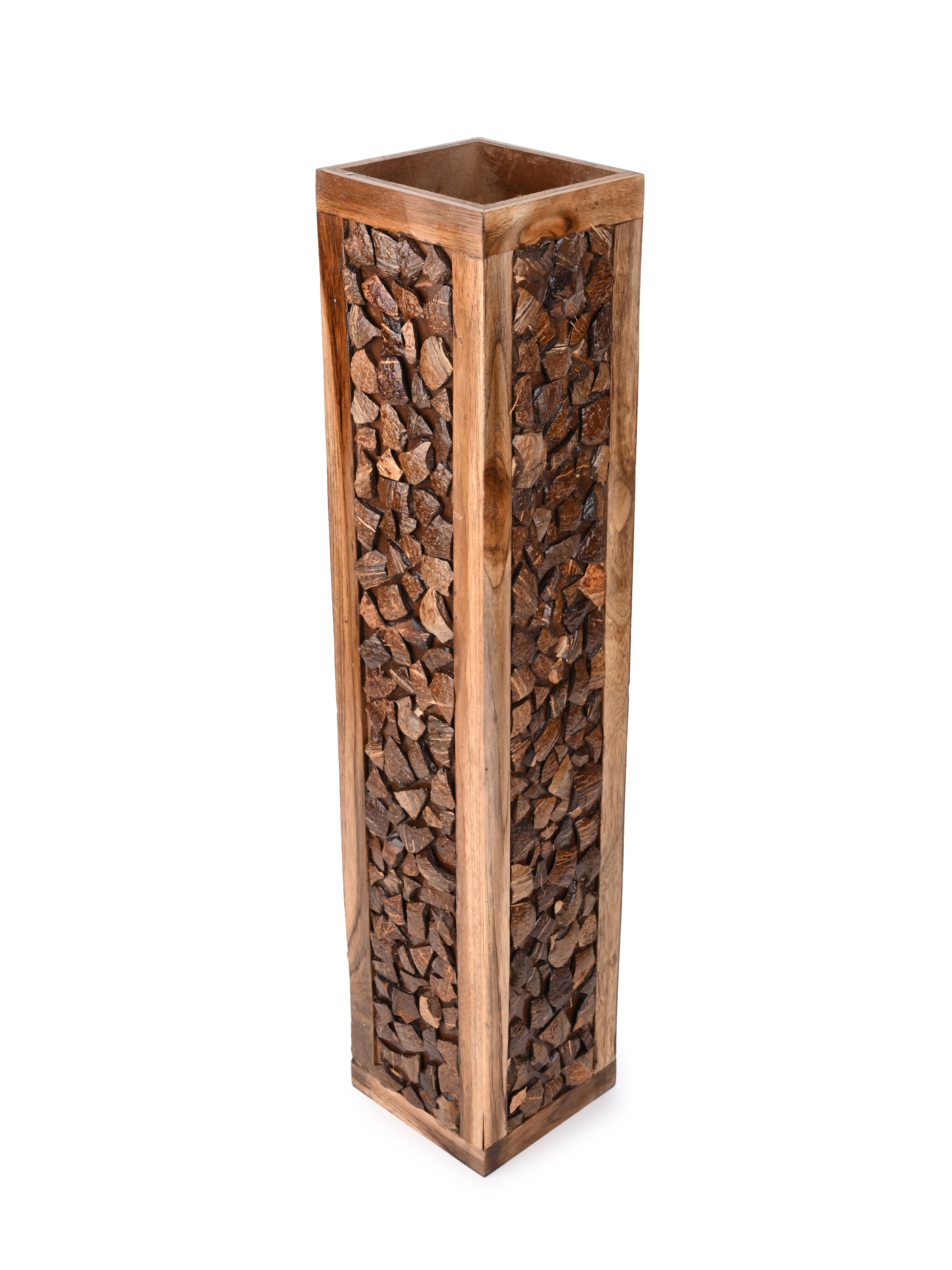 Tall Square Wooden Flower Vase for Home Office Decor - 2 feet height