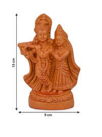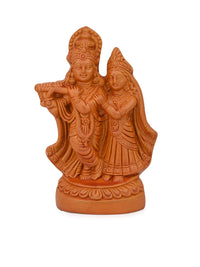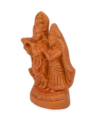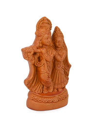 This exquisite Radha Krishna statue is a stunning piece of terracotta art, handcrafted in Bishnupur, West Bengal. The idol showcases intricate workmanship and attention to detail that has made this terracotta craft world-renowned. With its serene expression and graceful pose, the beautiful statue captures the essence of Lord Krishna, one of the most beloved deities in Hindu mythology. Perfect for any home or meditation space, it is a true work of art that will be cherished for years to come.