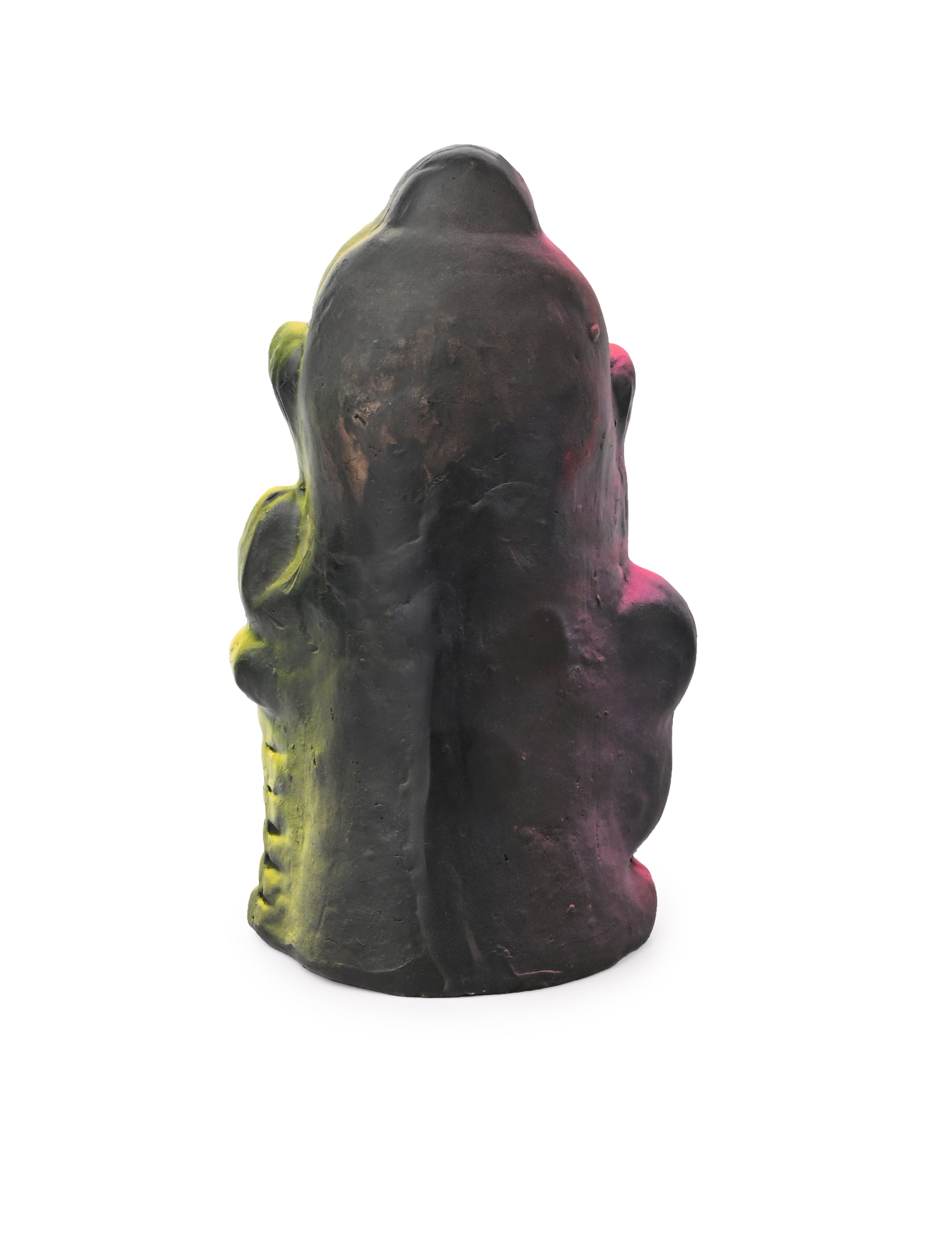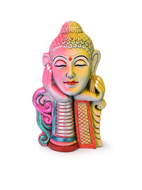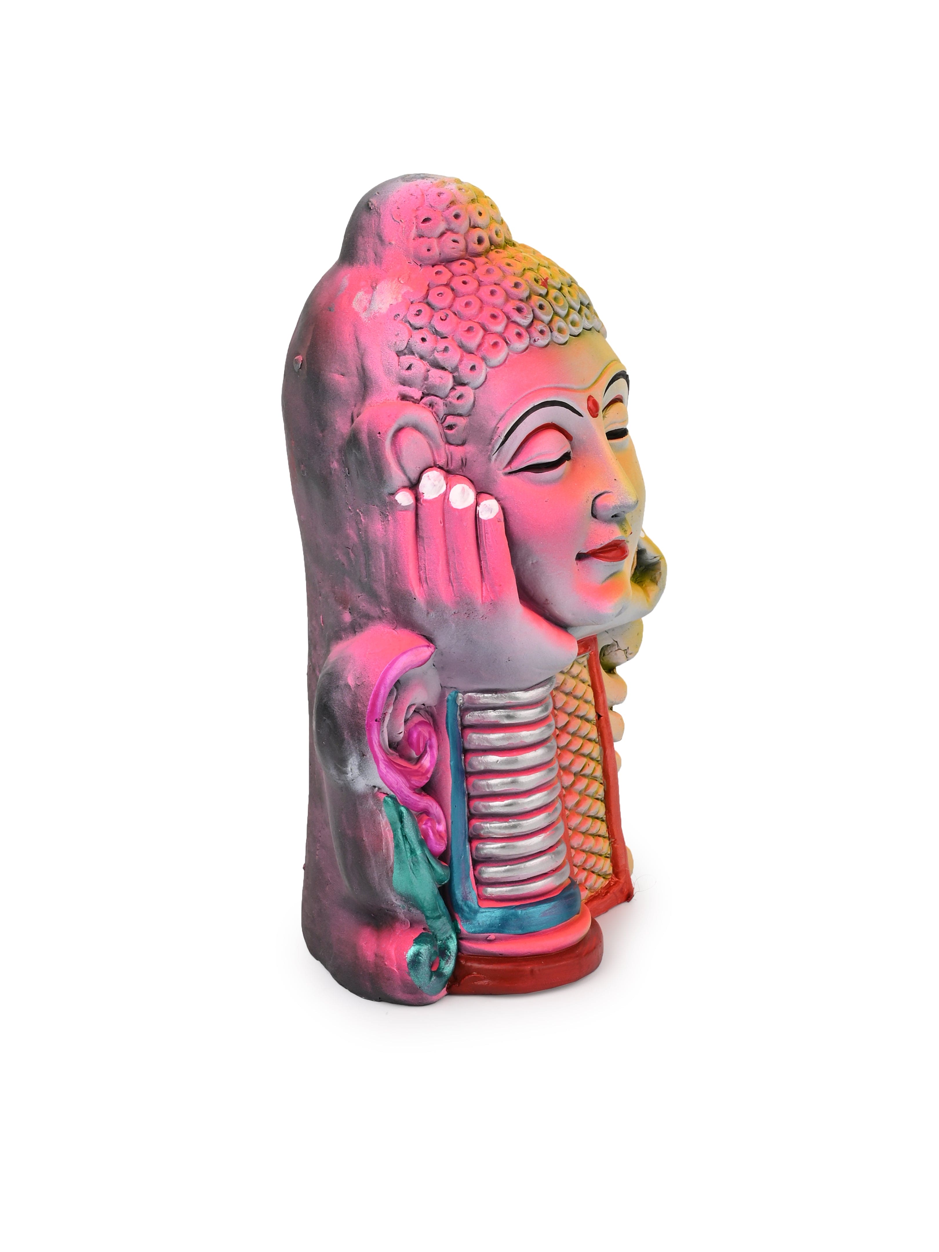 Discover the beauty of this terracotta thinking Buddha face carefully hand painted with bright colors. Lord Buddha is depicted in a thoughtful pose, with his face resting on his both palms, symbolizing deep contemplation. This is one of our best art decor for peace and harmony in your living room.