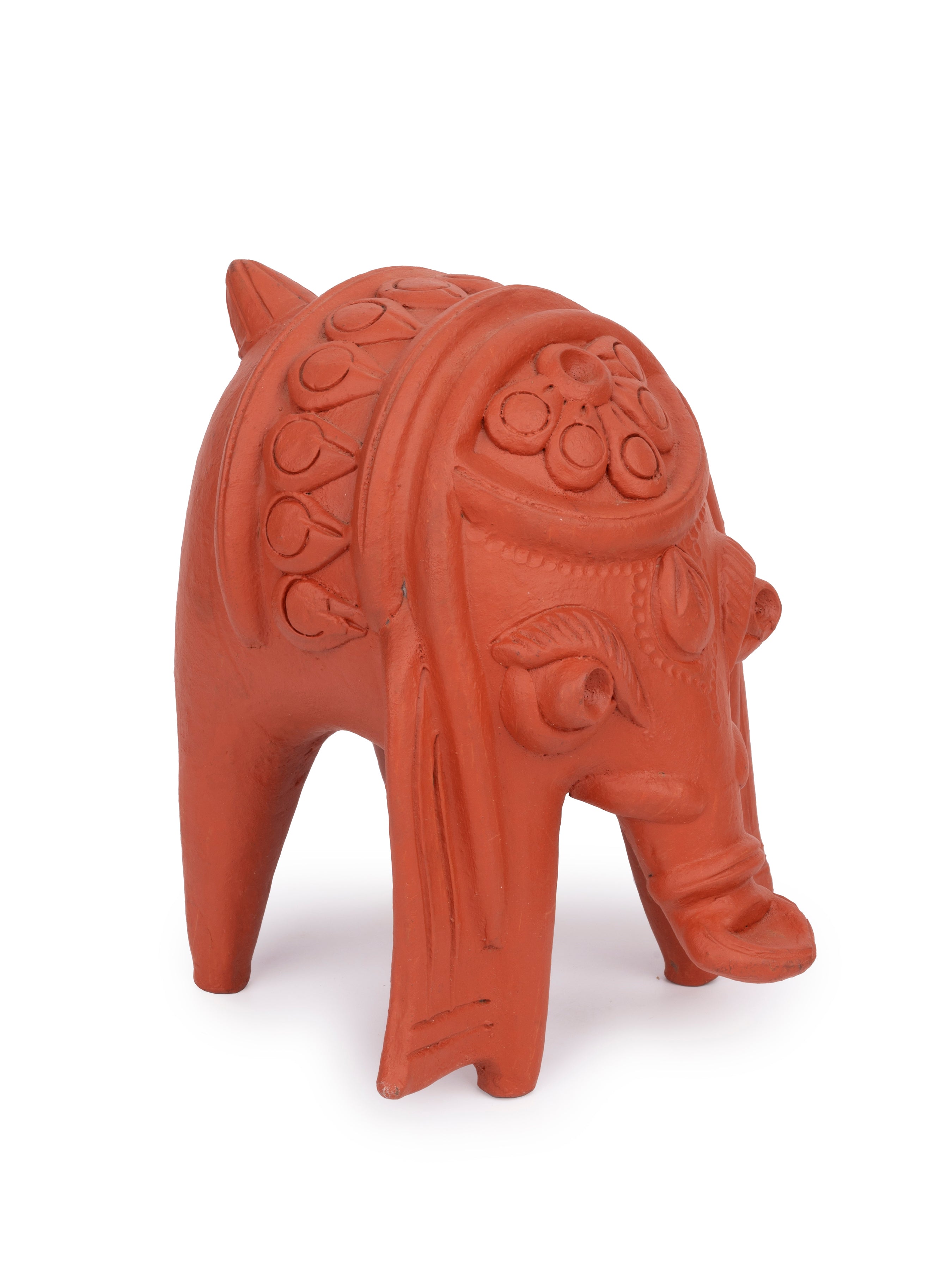 This clay elephant is so uniquely designed that it does not look like the typical figurines we see in our everyday life. Terracotta artform depicts the creativity of rural artisans of Bengal which even impresses the modern designers and architects using latest technology in their creations.