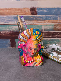In this multi purpose pen, pencil, stationary holder, Lord Krishna is depicted through modern art. The vibrant colors and serene face of Krishna makes this piece of art an amazing and proud possession for your home and office.