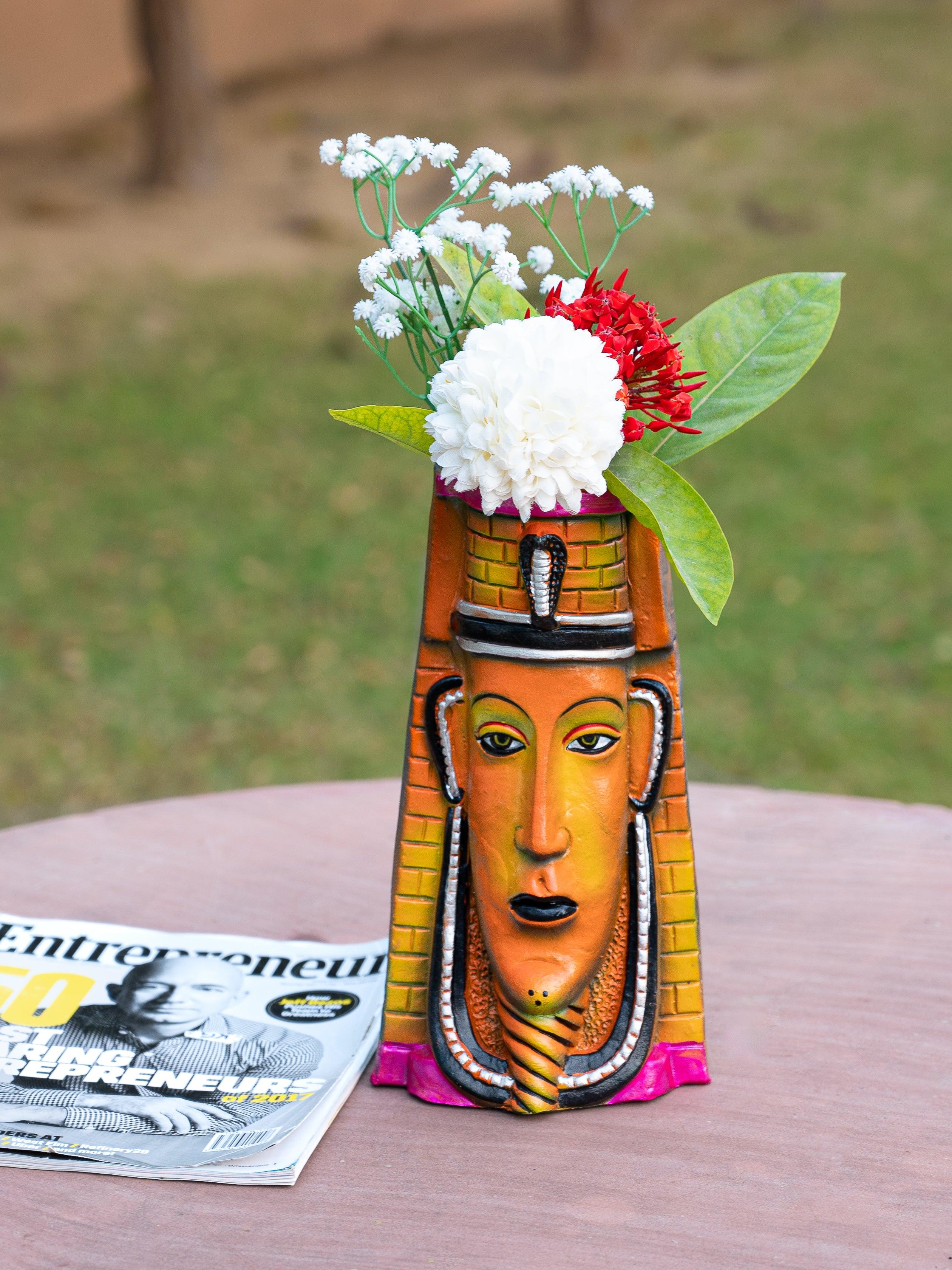 Give a touch of edgy and modern art to your dining table, side table of your bed etc. with our colorful Egyptian Cleopetra Vase. This vase will set your interiors apart from boring day to day routine with its fun & pop colors. It makes a perfect decor piece for dried floral arrangements or to hold everyday fresh blooms.
