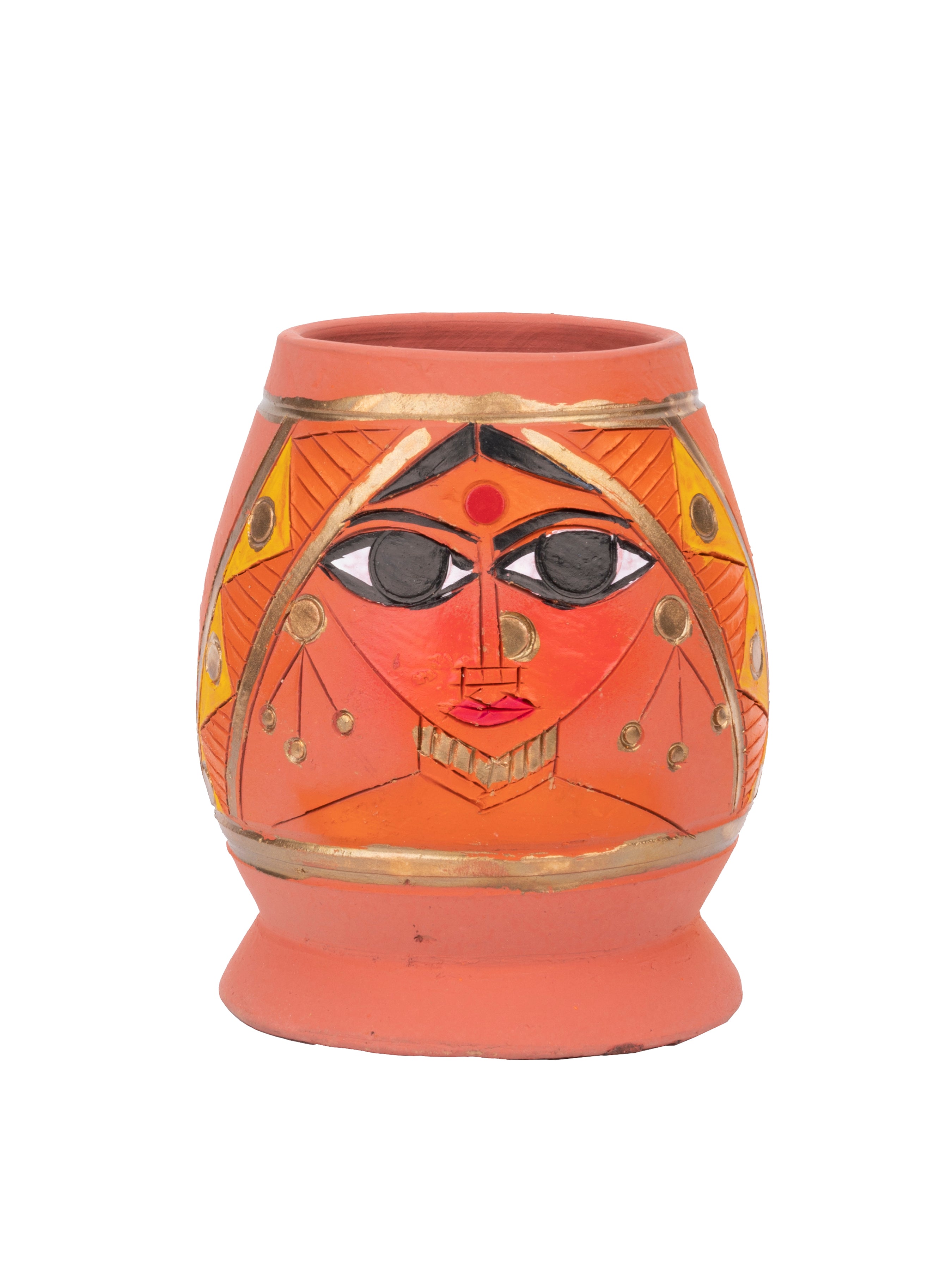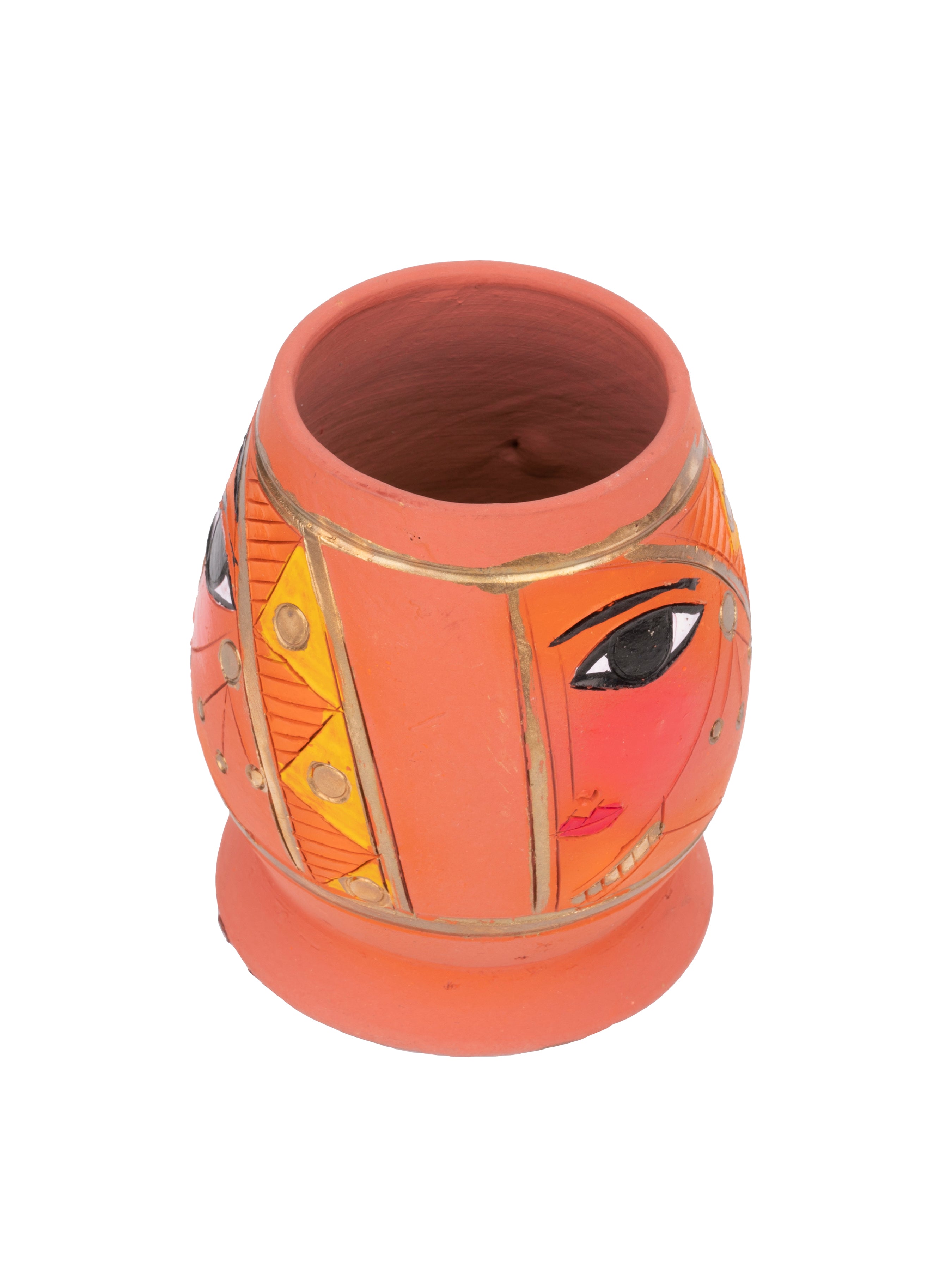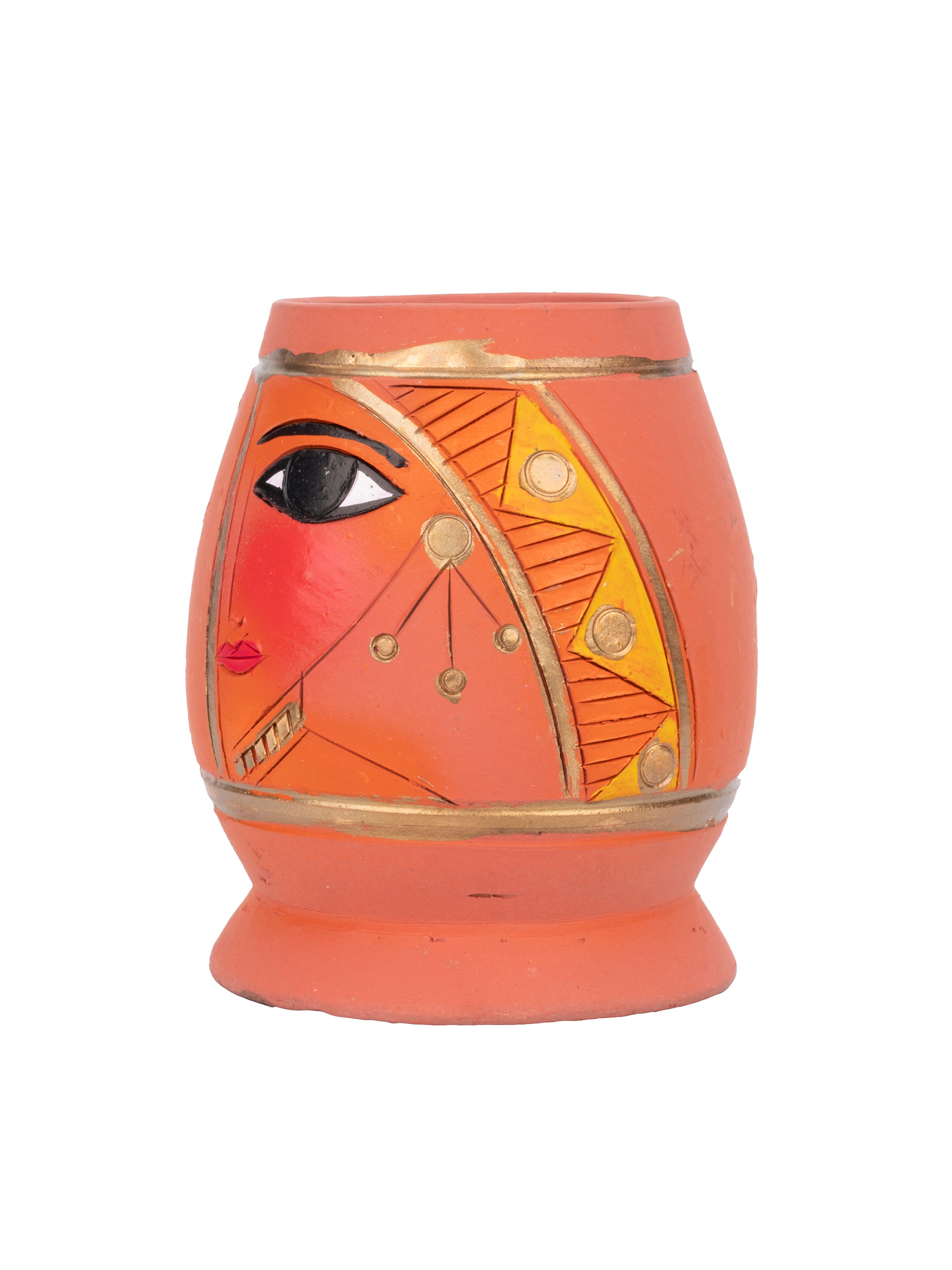 This eccentric and artistic pen and pencil stand and organizer is a uniquely crafted piece with an abstract face look which makes it stand out loud. Bring home the traditionality and creativity of Bengal artisans through these authentically handcrafted terracotta clay pieces.