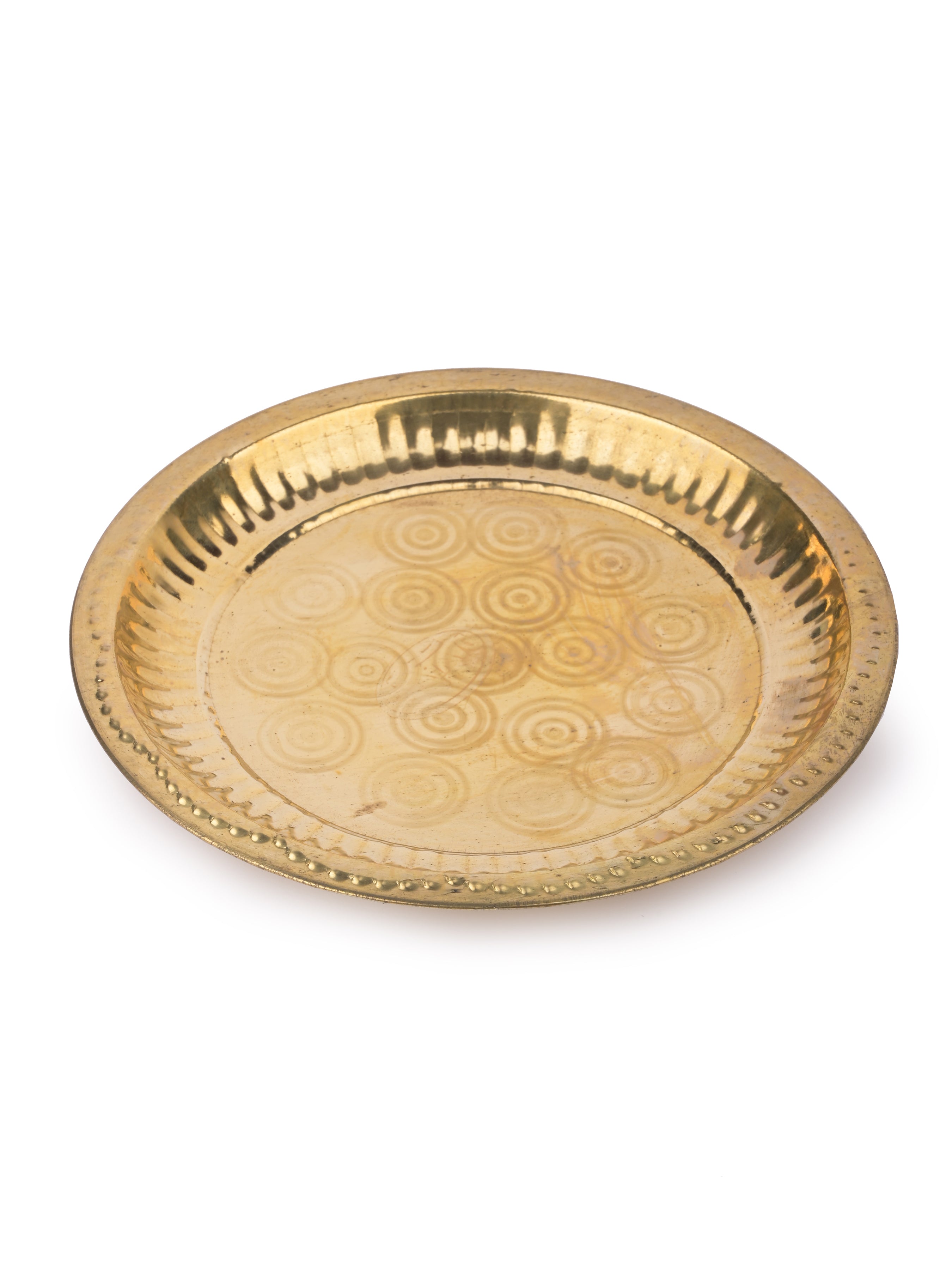 This brass plate gives you a feeling of nostalgia, a spark of something authentic. Borrowed from generations before; brass is a metal that defines elegance, style & taste. The plate here comes in both large 12 inches & small 8 inches size depending on your requirement. Package contains 1 piece of plate.