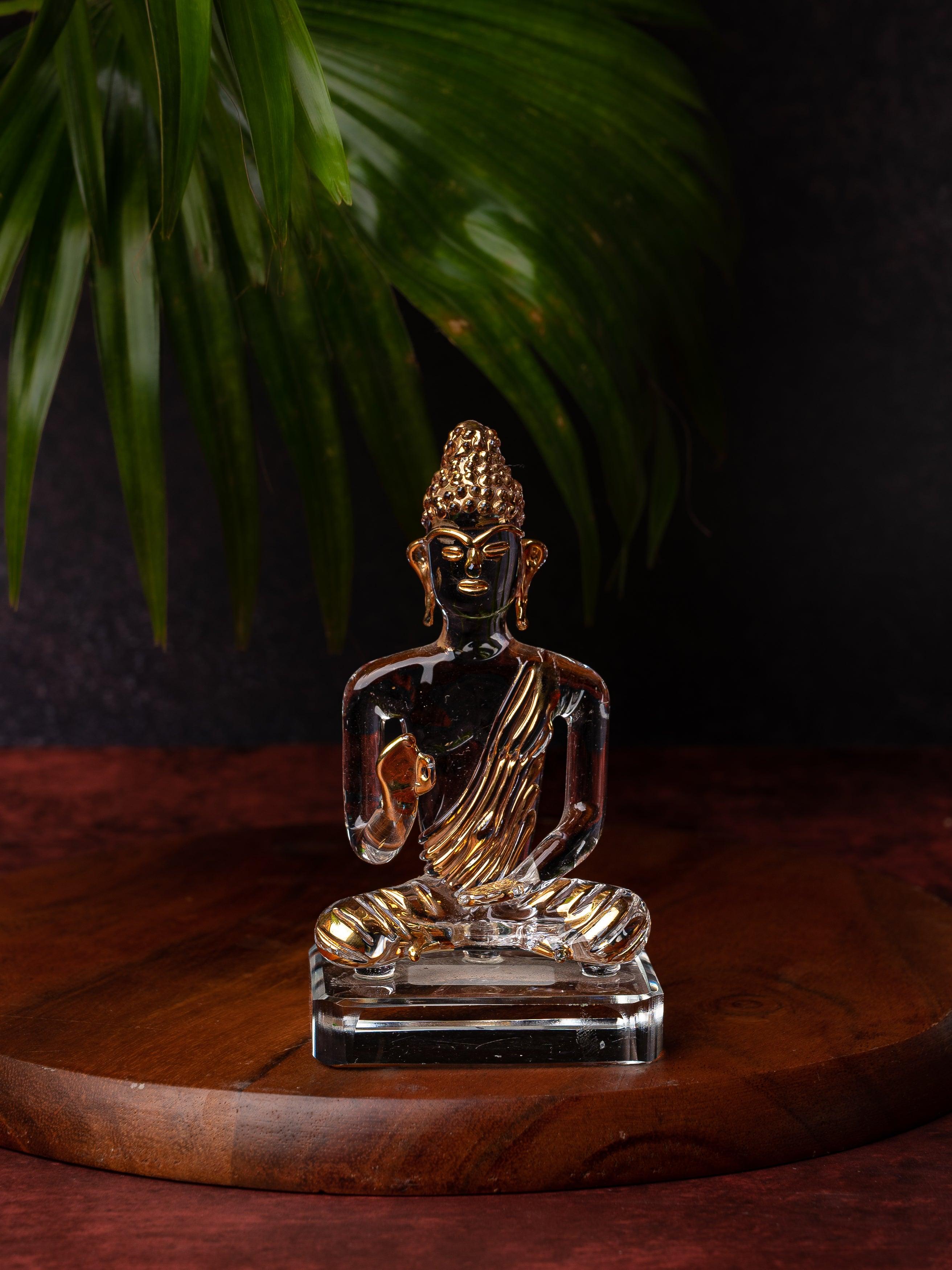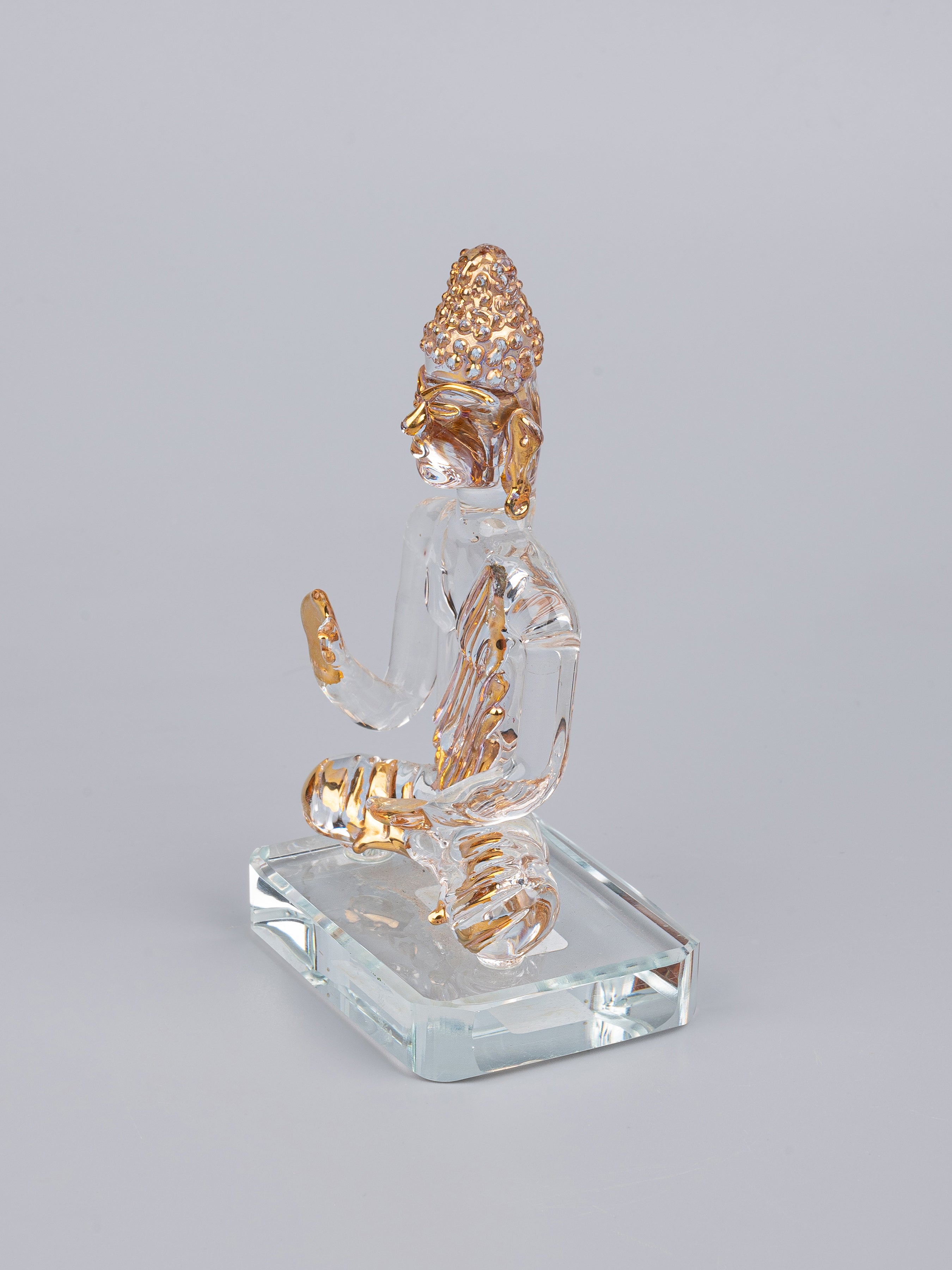 Small but exclusive piece of hand crafted glass art, this idol of Lord Buddha can be placed perfectly on your office table or car dashboard.
