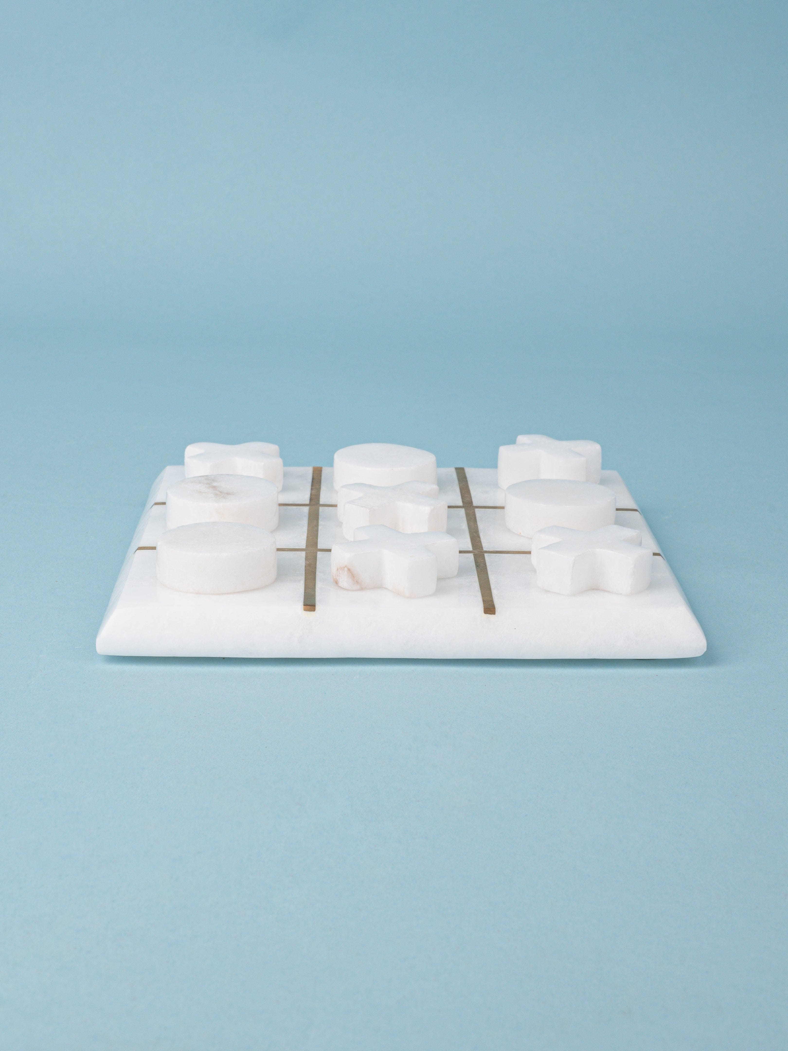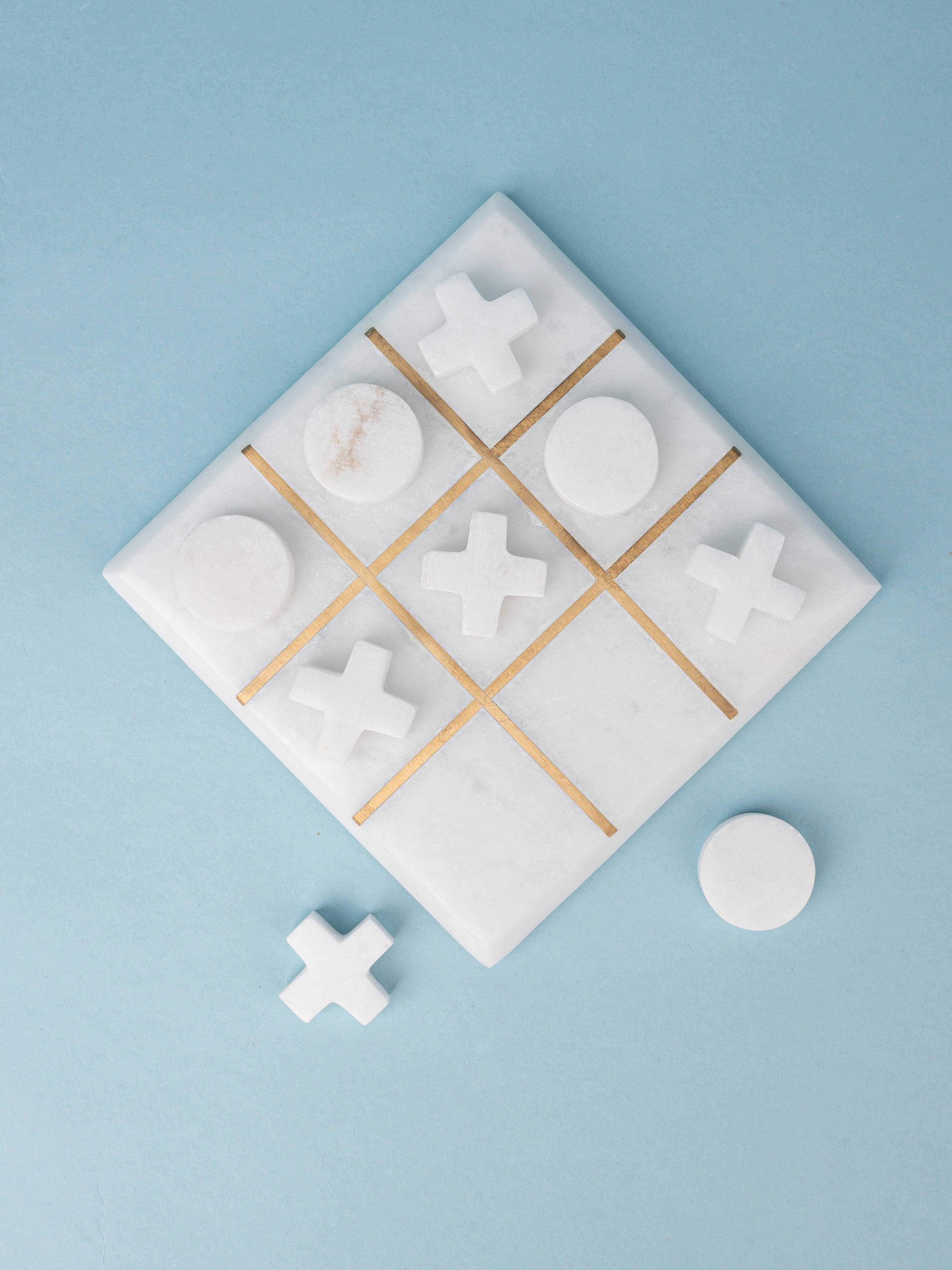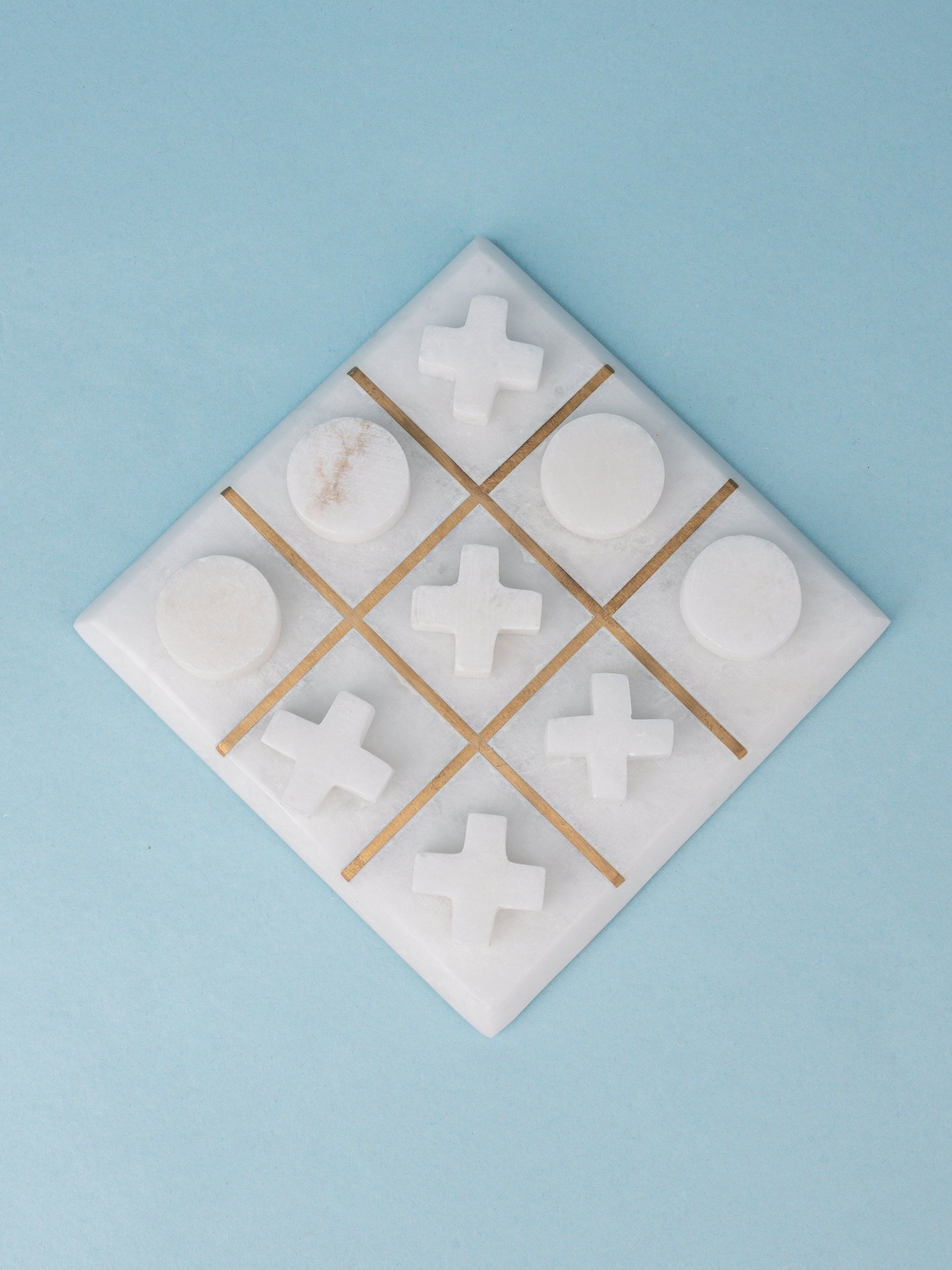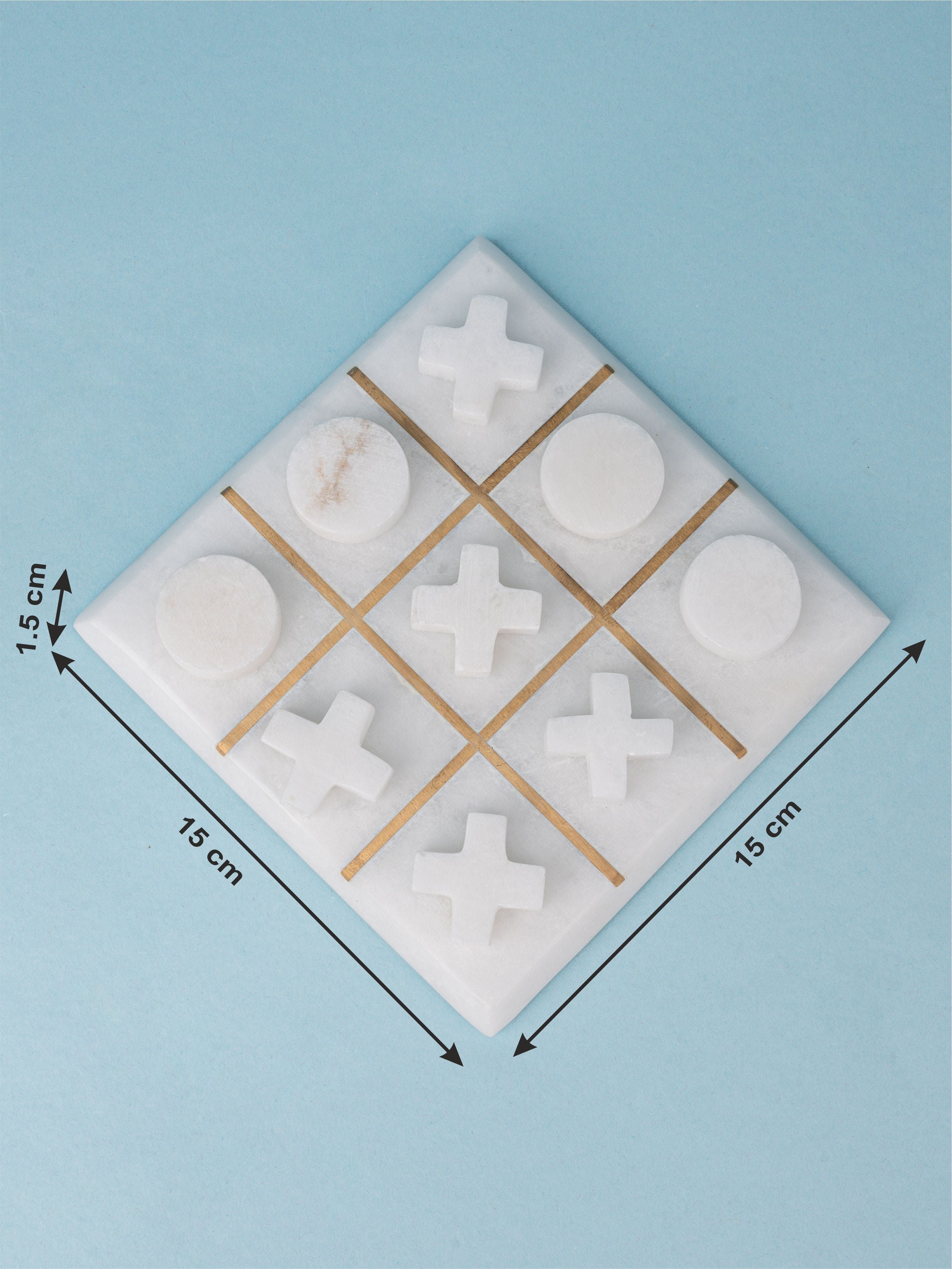 A brilliant piece of art that will undoubtedly make you recollect the adolescent memories and make your living space more stylish. It has 4 Naught and 5 Cross made of marble and a marble base with brass inlay partitions. A perfect gift for new homes and a coffee table decor for your living room.
