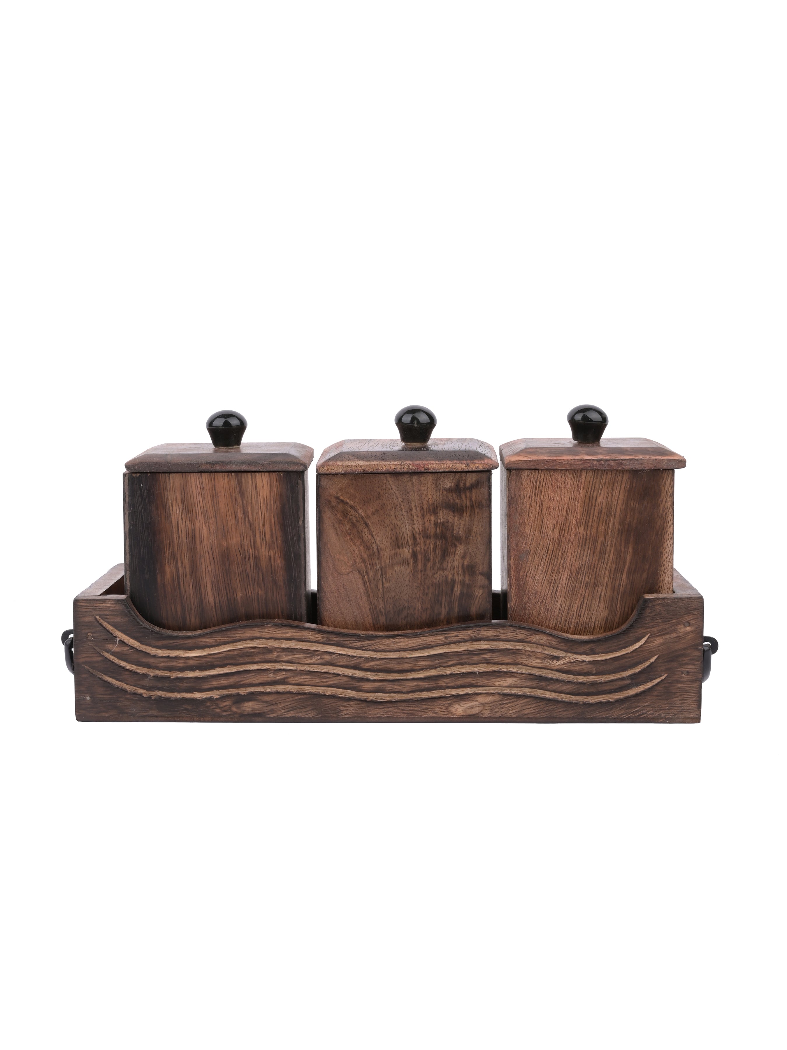 We bring you the best quality handmade wooden kitchen set with 3 Containers and a Tray. Store your Tea, Coffee and Sugar with unique style and impress your guests.