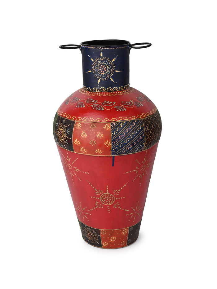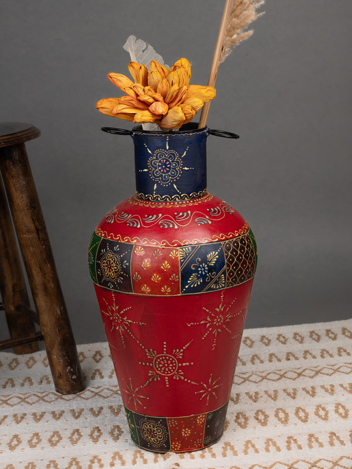 Metal Crafted Rustic Painted Tall Flower Pot for Home Decor - 18 inches