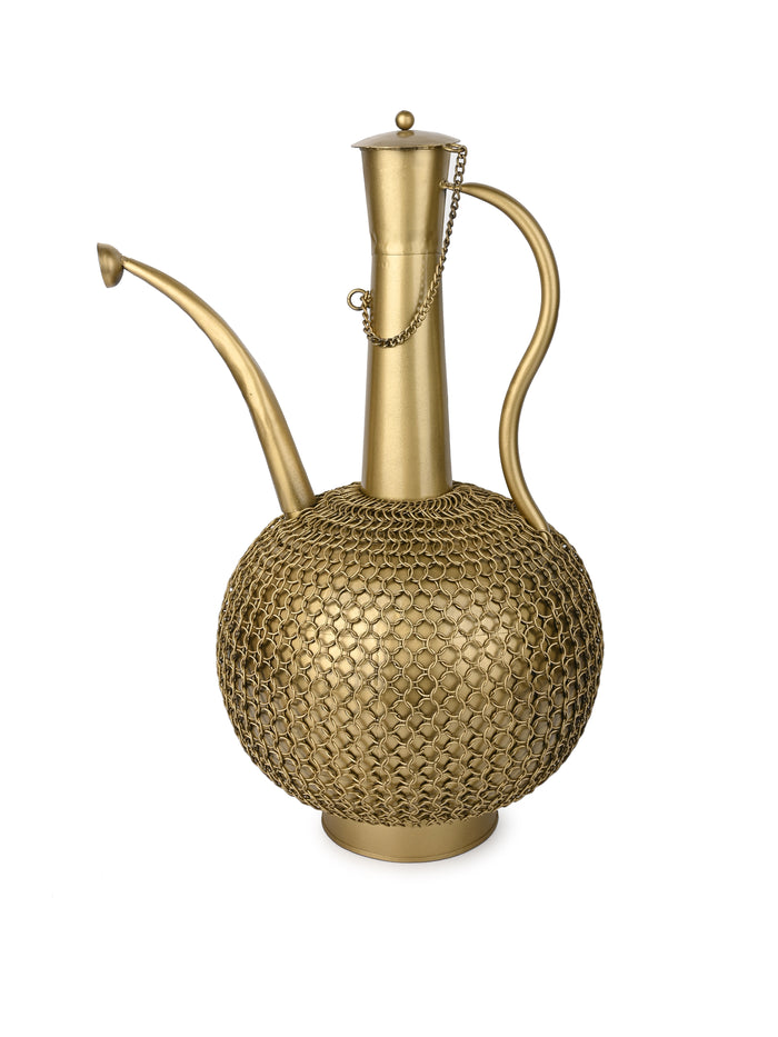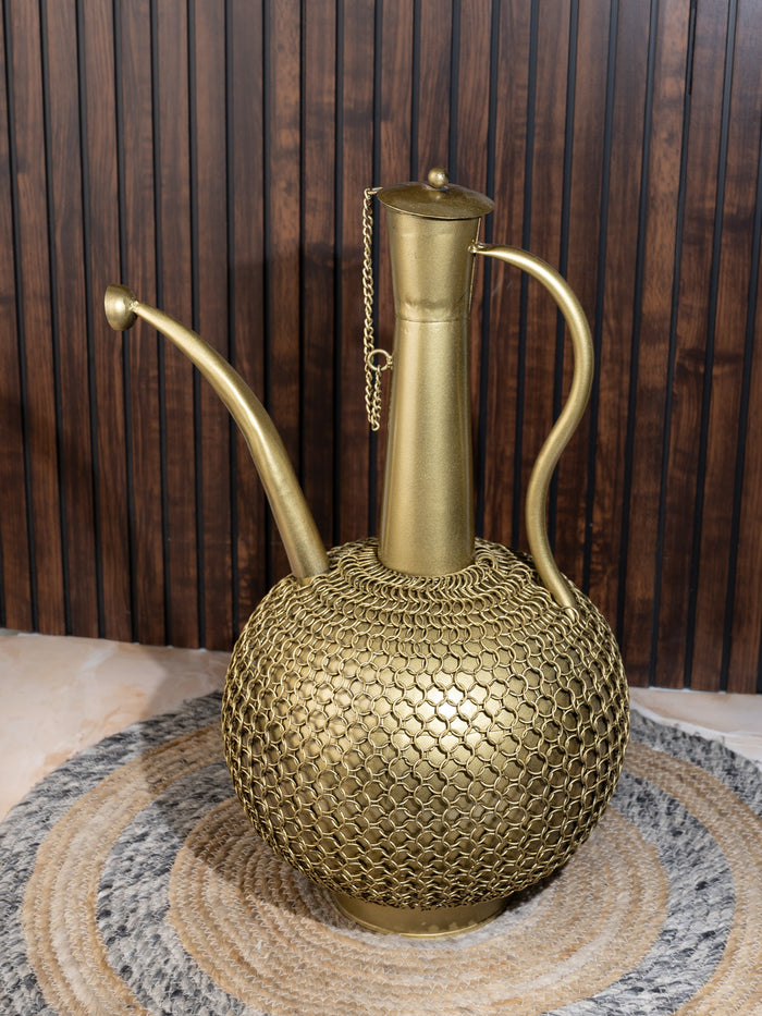 Metal Crafted Gold Color Surahi Replica for Home Office Decor - 20 inches