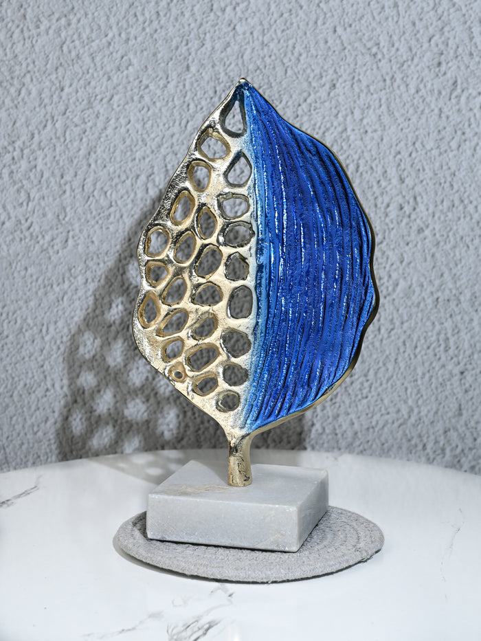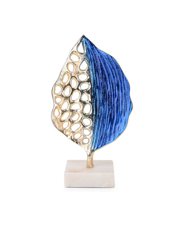 Blue and Gold Metal Leaf Decor for Table top and Cabinets - 12 inches