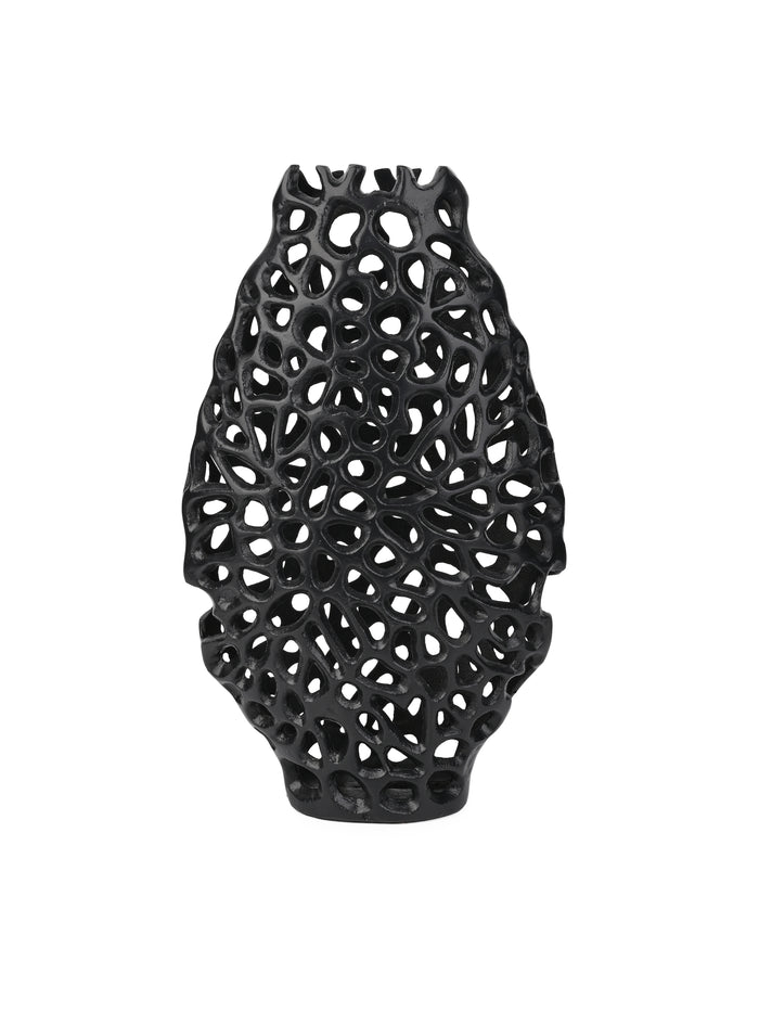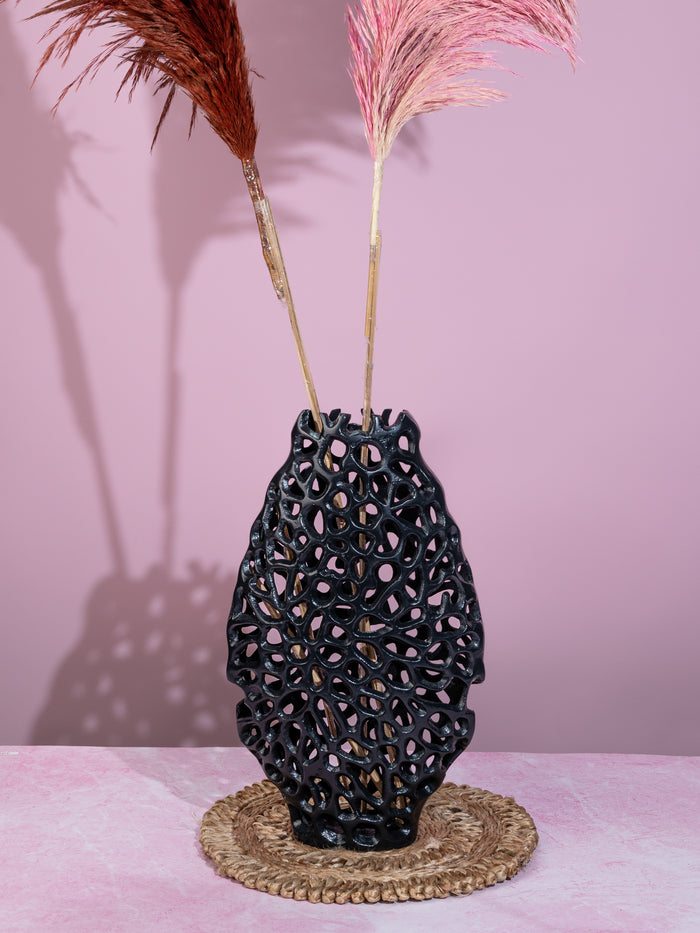 Black Metal Coral Design Flower Vase for Home Office Decor - 15 inches
