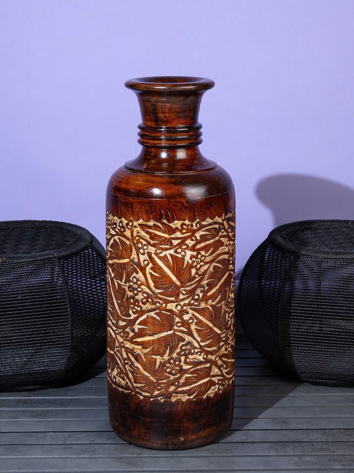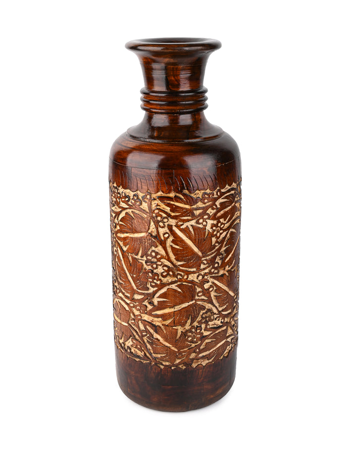 Tall and Heavy Solid Wood Hand Carved Vase for Home and Office - 2 feet Height