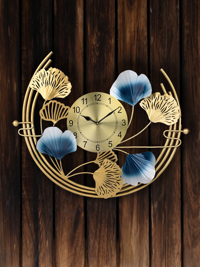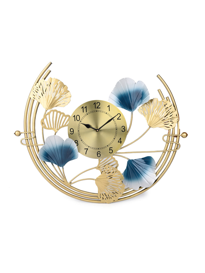 Gold and Blue Metal Crafted Elegant Wall Clock - 22 inches