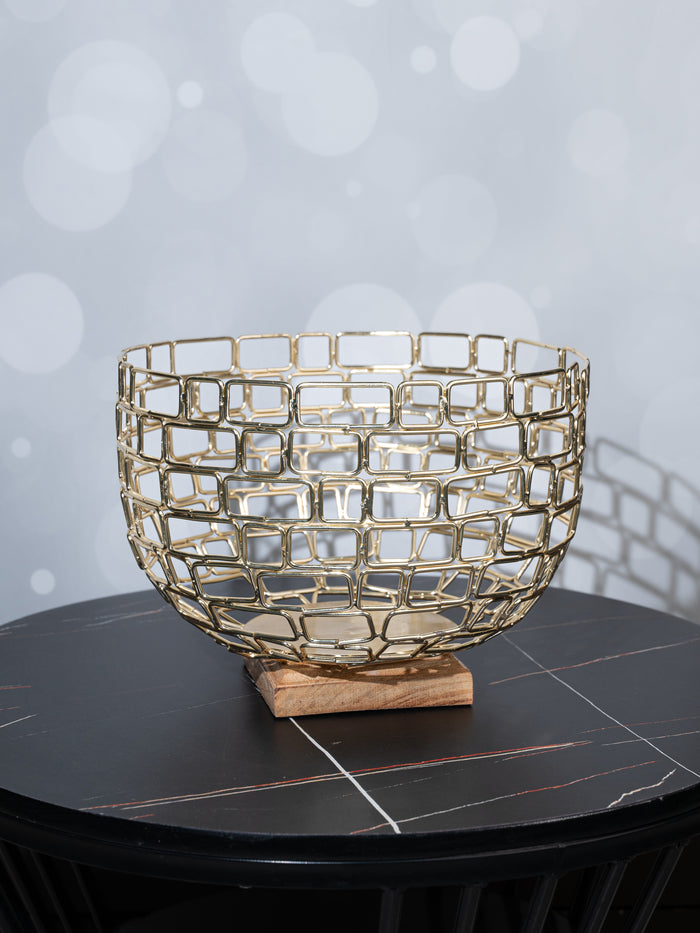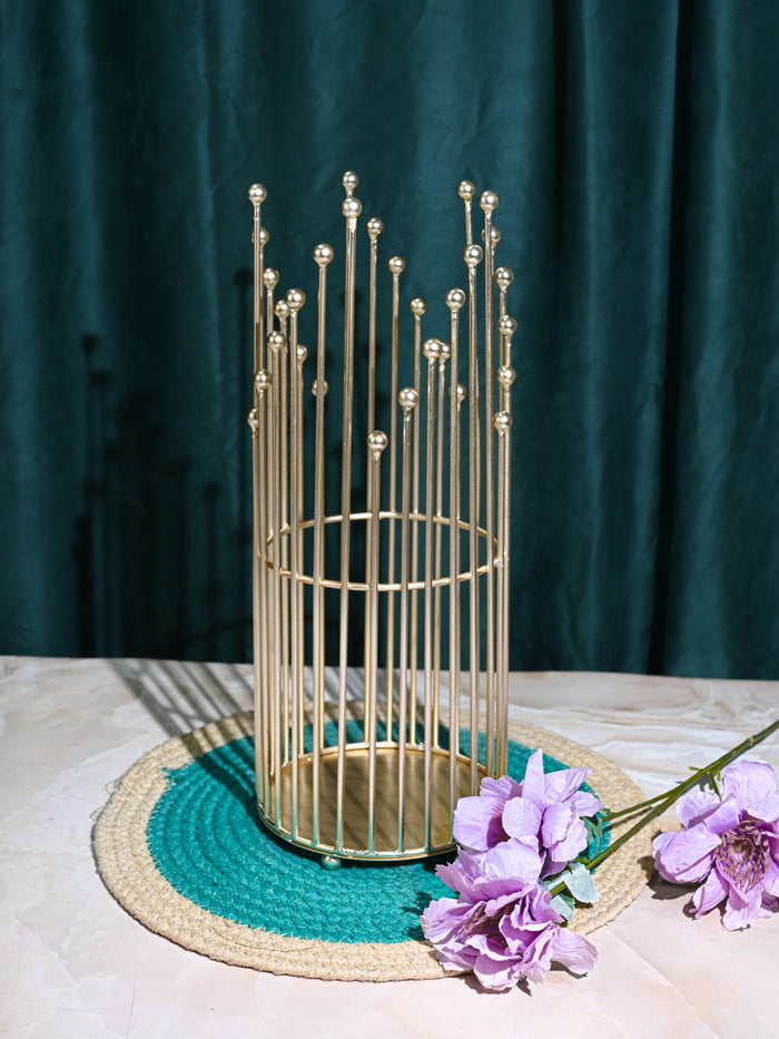 Metal Crafted Cage Design Golden Color Table Top Decor - 16 inches