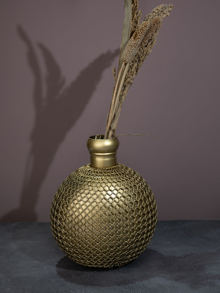 Metal Crafted Golden Vase covered with Chain Mesh - 12 inches
