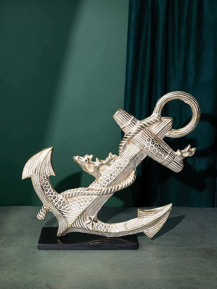Metal Crafted Gold and White Anchor for Home Office Decor - 16 inches