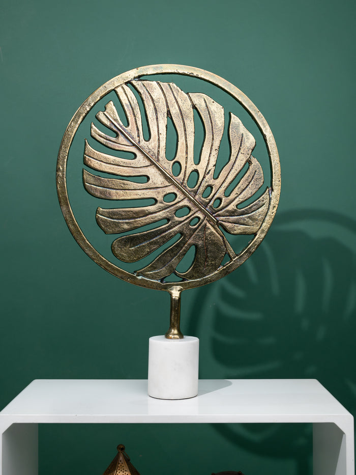 Metal Leaf Decor with Stand for Home Office - 15 inches