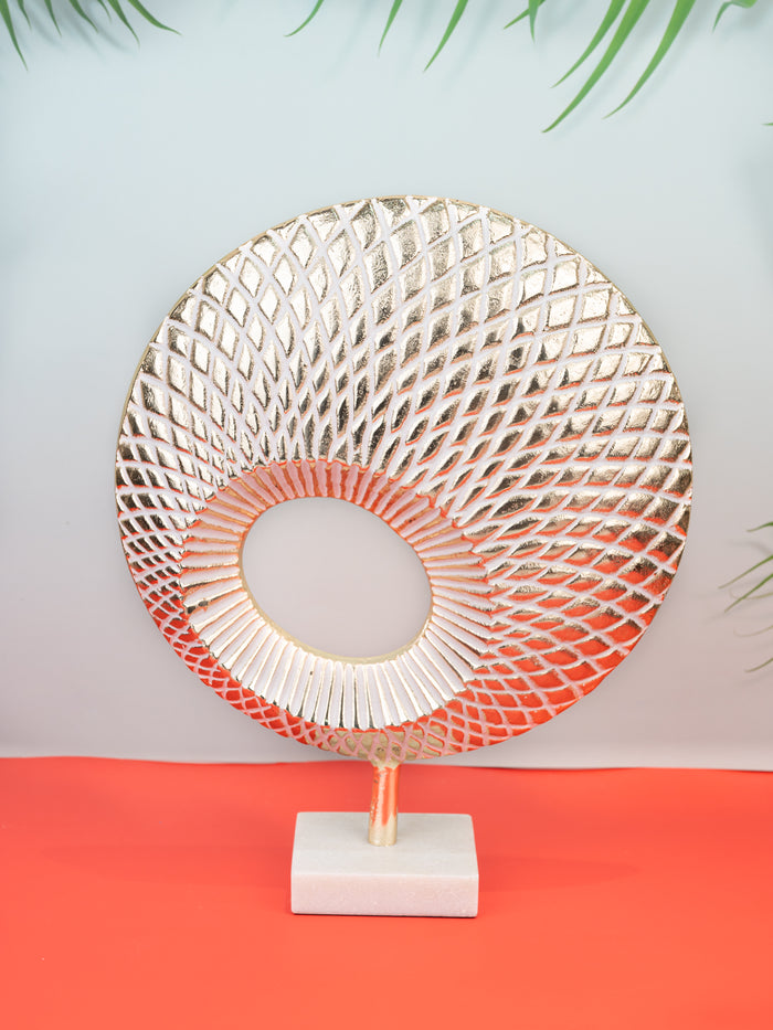 Metal Crafted White and Gold Abstract Design Table Top Decor - 16 inches