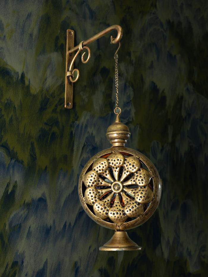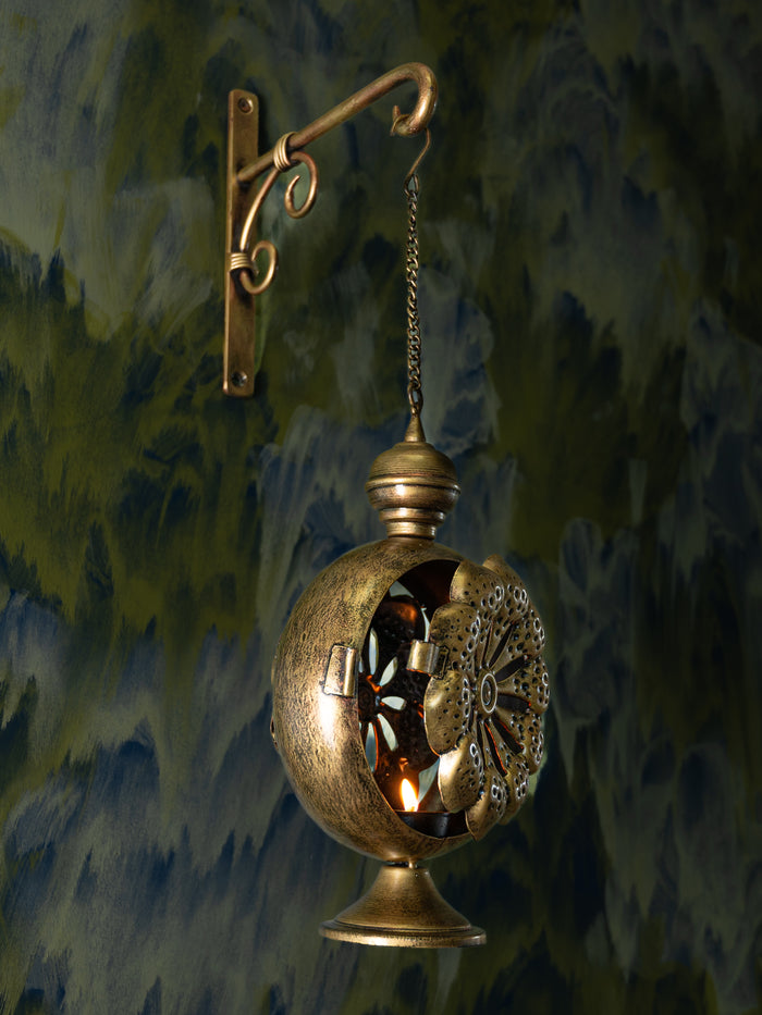 Metal Crafted Wall Hanging Tlight Holder in Antique Gold Color