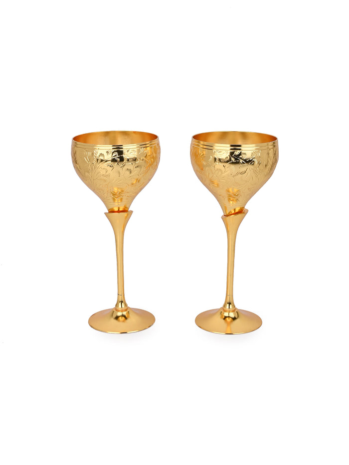 Brass Crafted Wine Glass - Set of 2 in Red Velvet Gift Box