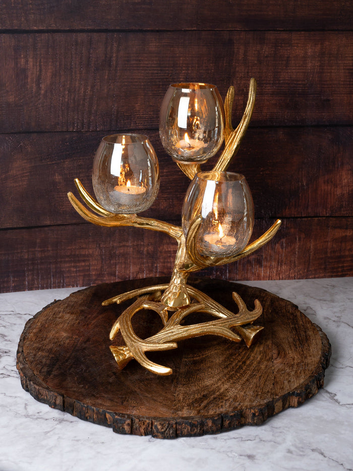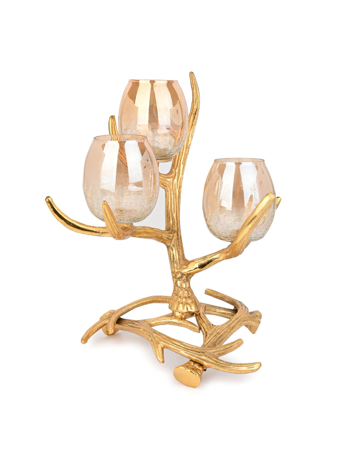 3 piece Glass Candle Holder on a Abstract Branches Design Stand - 12 inches