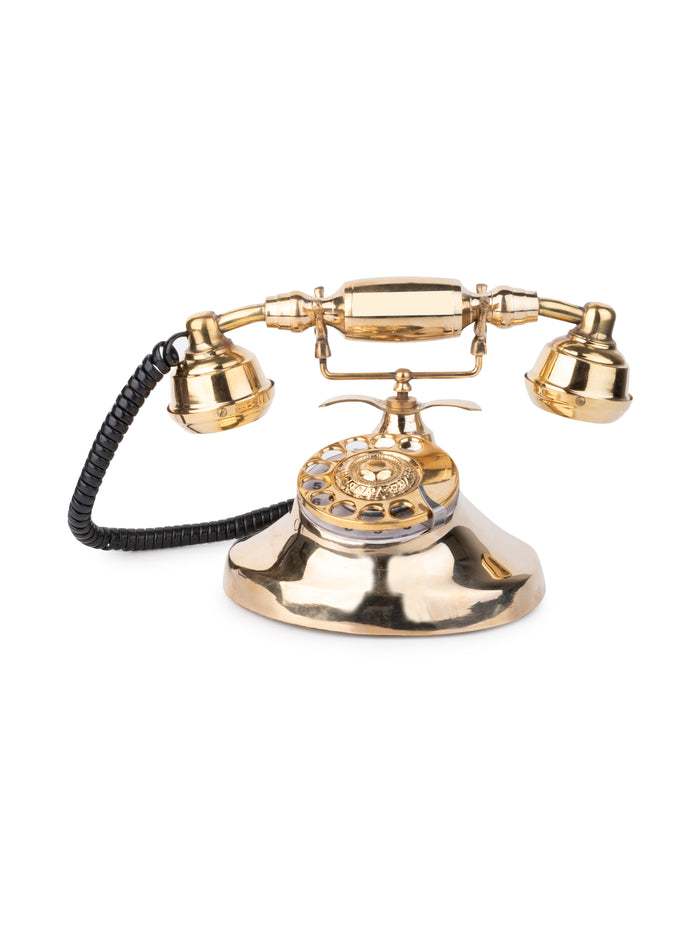 Shiny Brass Vintage Rotary Dial Landline Phone for Home Office Decor