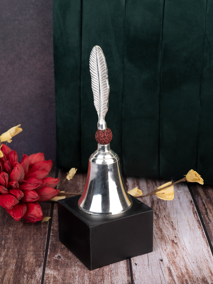Premium Quality Brass Crafted Puja Bell with Shiny Silver finish - 9 inches