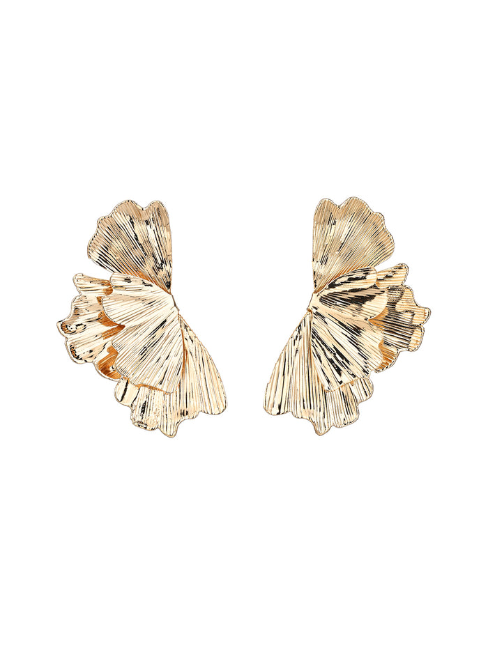 MAURYANA - Stainless Steel Gold Plated Flower Petal Design Ear studs