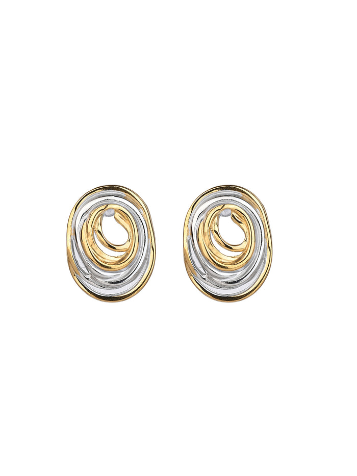 MAURYANA - Titanium Steel 18k Gold Plated Circular Two Tone Earrings