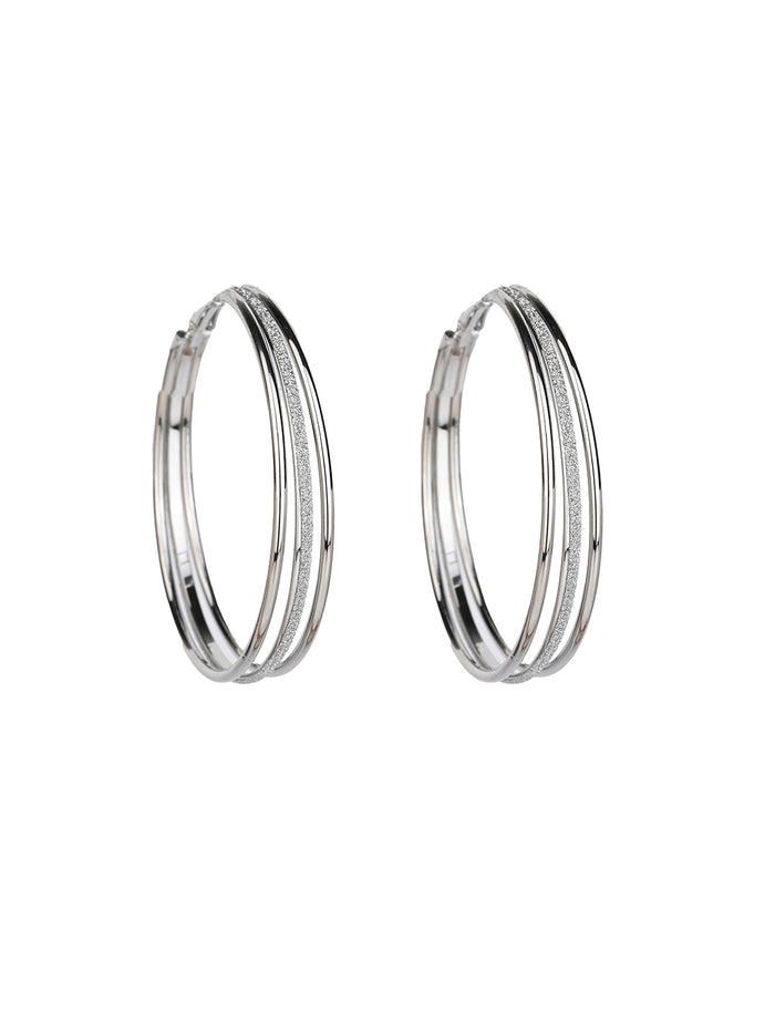 MAURYANA - Large Circle Design Frosted Copper Earrings in Silver Color