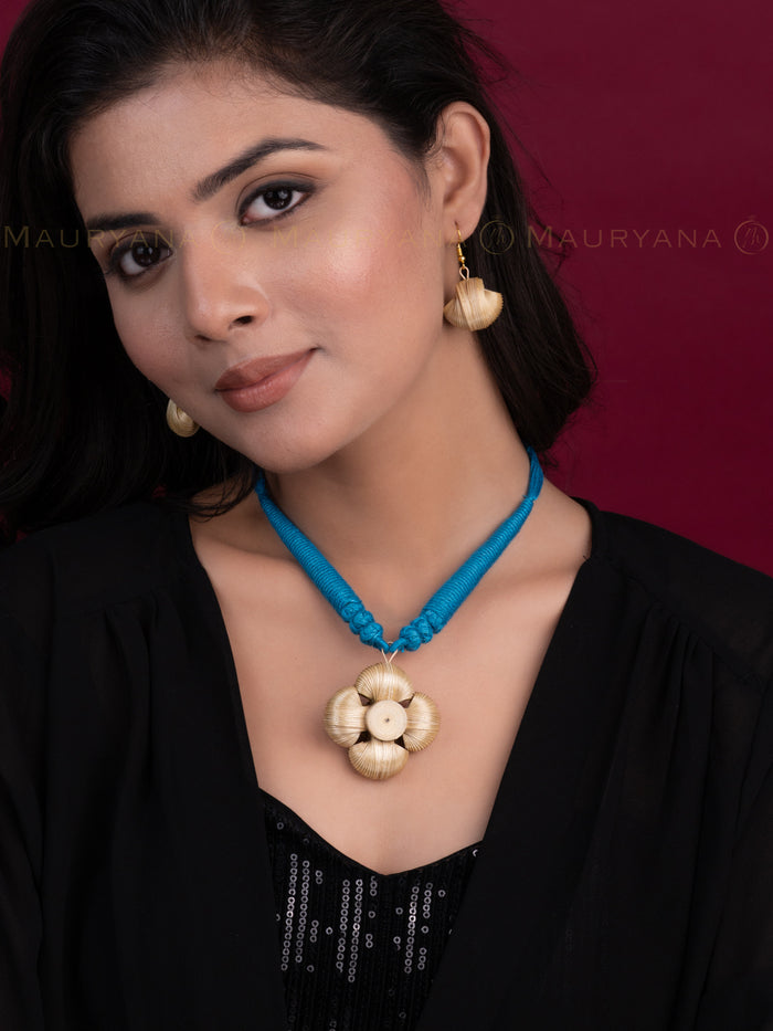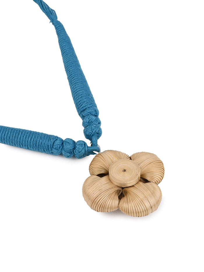 MAURYANA - Bamboo crafted flower pendant necklace set with earrings - adjustable length