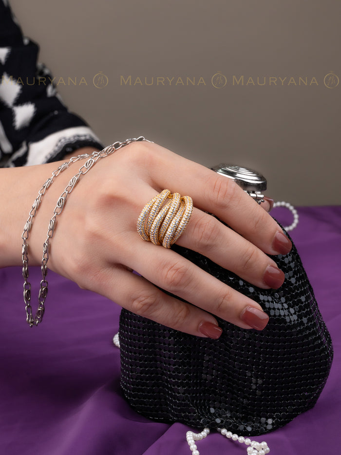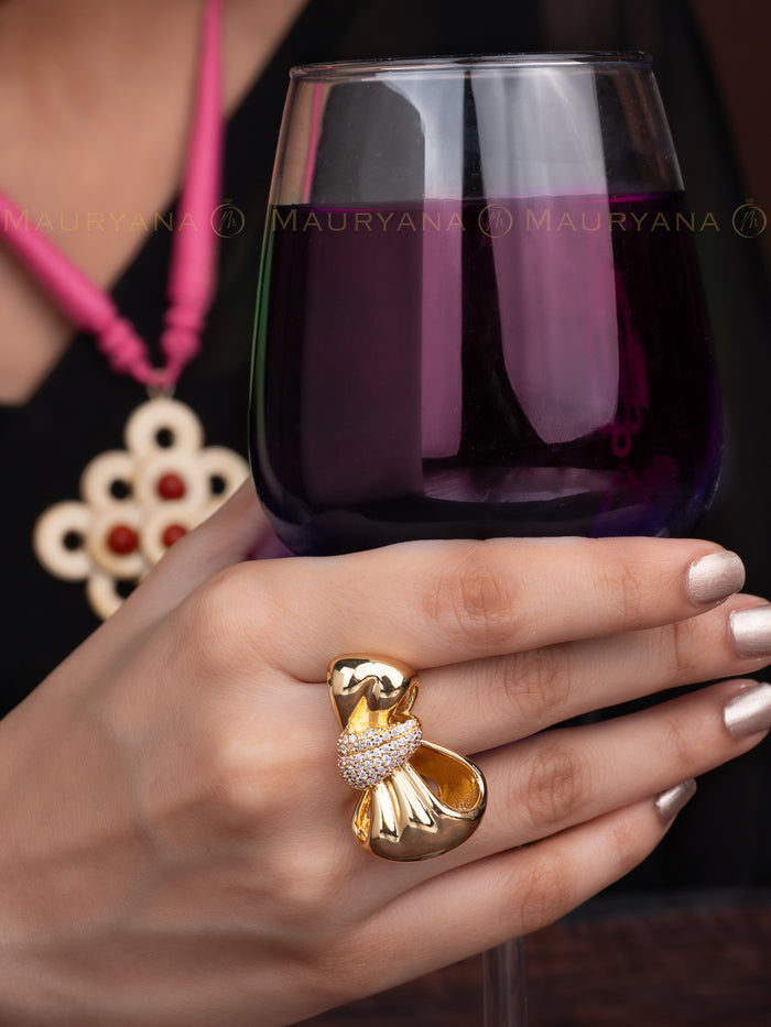 MAURYANA - Copper 18k Gold Plated Heavy Zircon Inlay Royal Design Ring