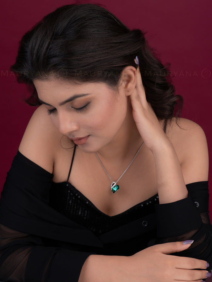MAURYANA - Rhinestone Heart Shaped Pendant Necklace - Available in 3 colors options