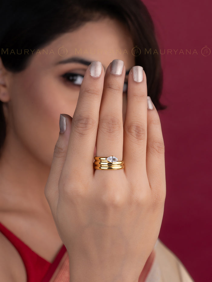 MAURYANA - Stainless Steel 18k Gold Plated Ring with Zircon Stud