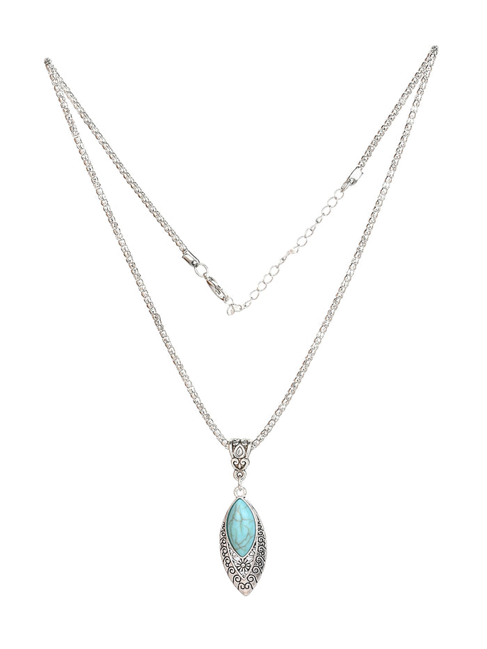 MAURYANA - Alloy Metal and Turquoise Pendant Necklace Set with Earrings