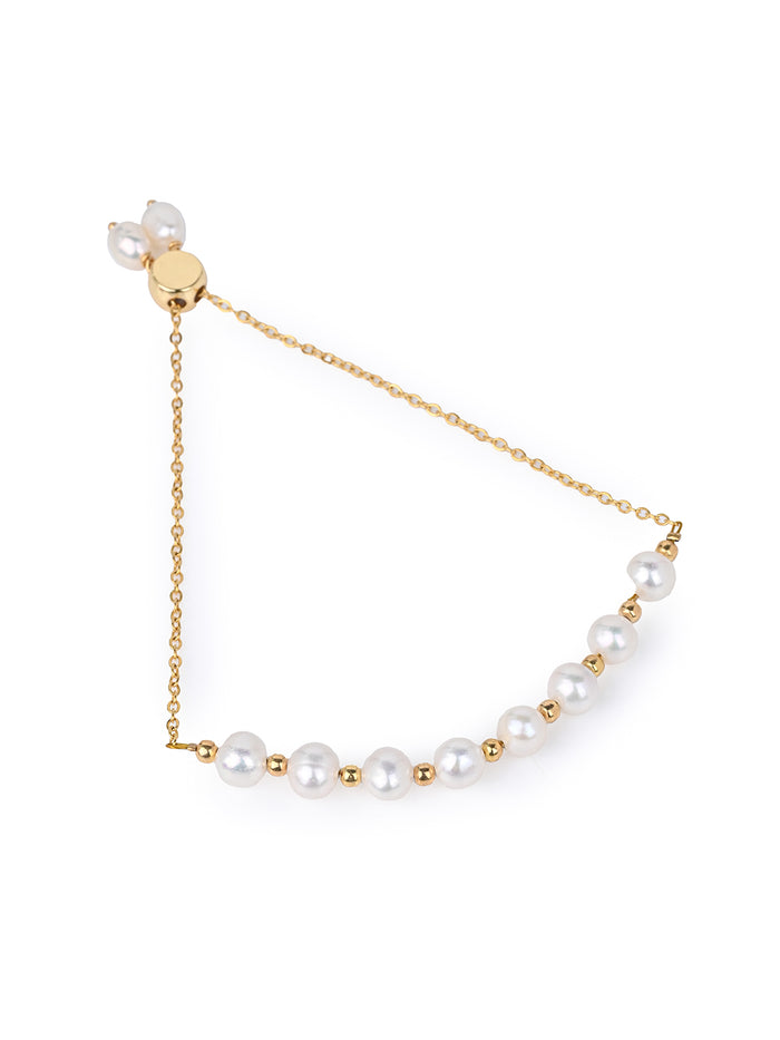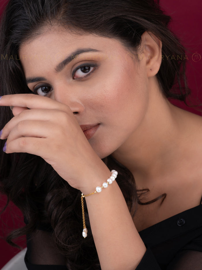 MAURYANA - Pearl and Stainless Steel Crafted Fashionable Bracelet - Adjustable length