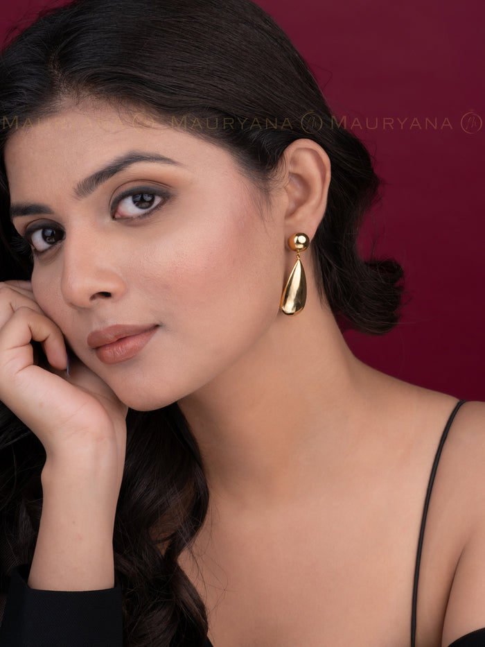 MAURYANA - Stainless Steel 18k Plated Water Drop Design Pair of Earrings - Waterproof, Non Tarnish