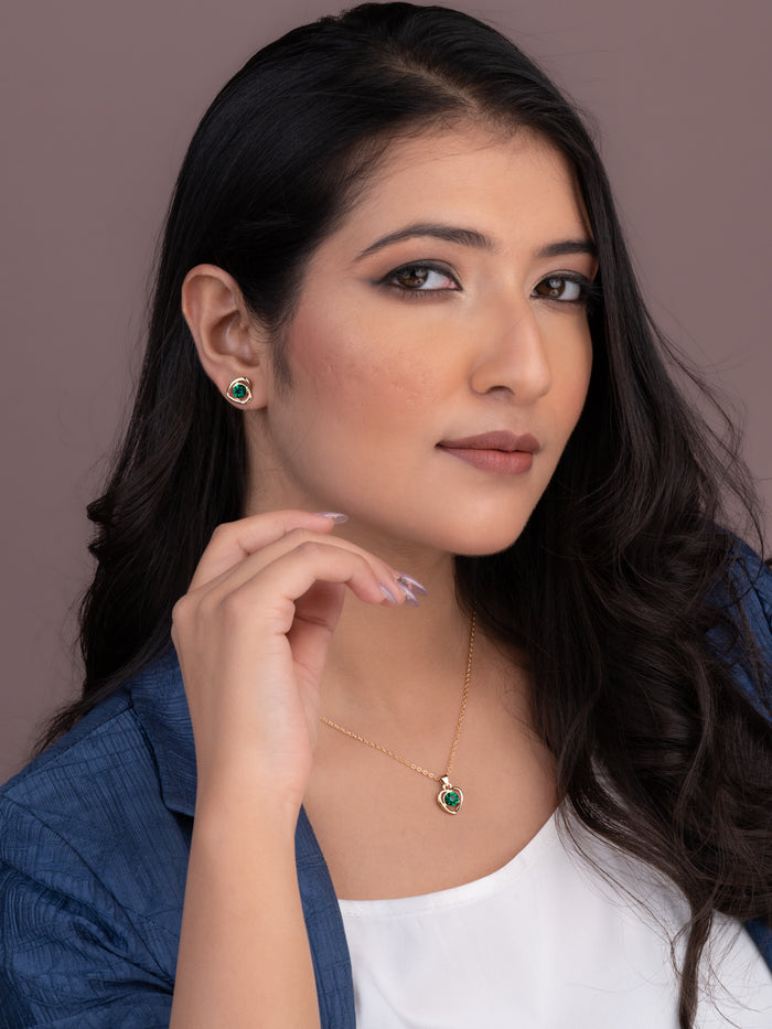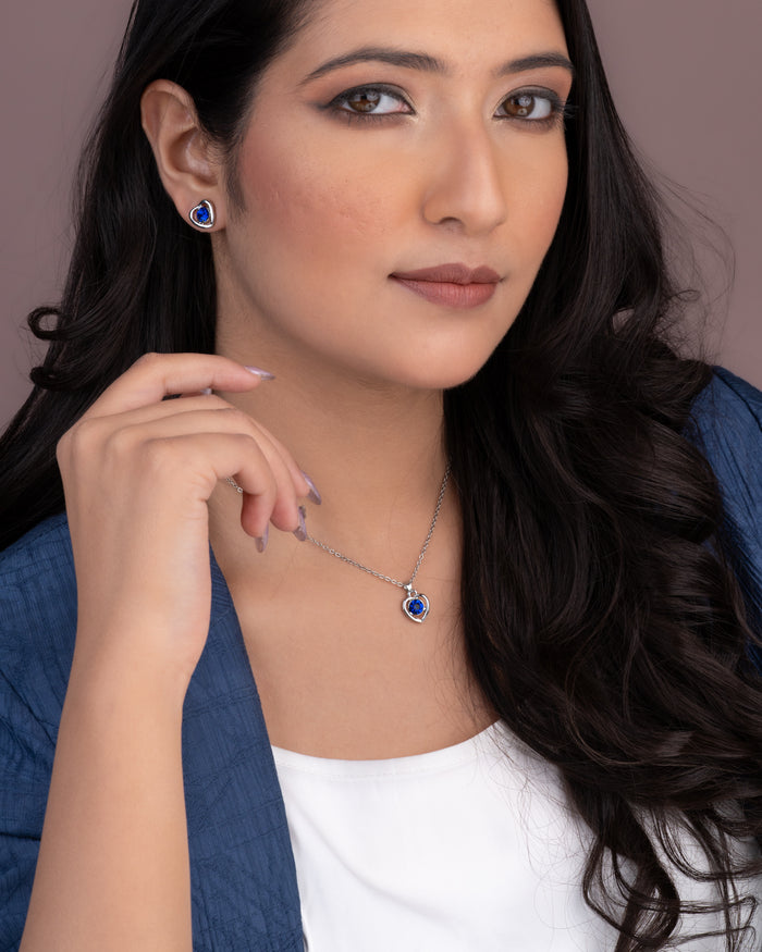 MAURYANA - Alloy Metal and Artificial Gemstone Heart Pendant Necklace set with Earrings - Available in Blue and Green Colors