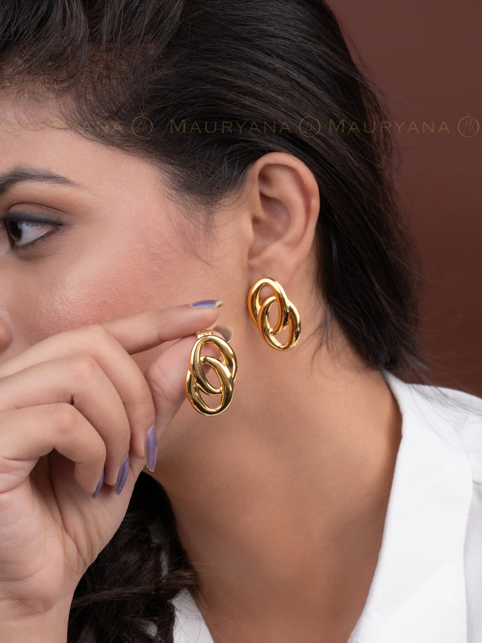 MAURYANA - Stainless Steel 18k Gold Plated Classic Design Pair of Earrings - Waterproof, Non Tarnish